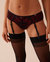 This refined lace bikini panty features sheer mesh panels and removable garters for a customizable look. Perfect for both everyday wear and special occasions.
