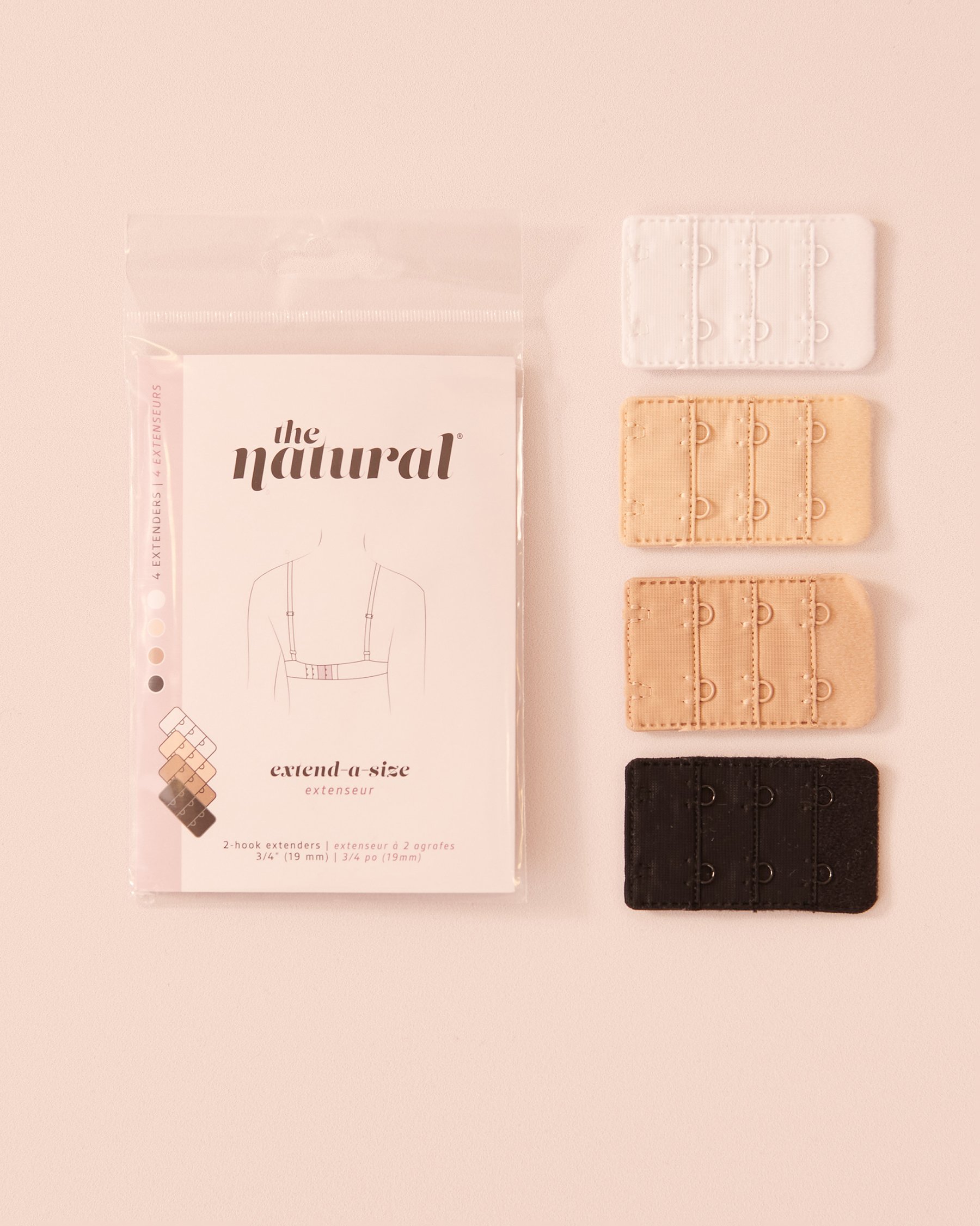 A simple solution to feel comfortable again in your bras that have become a little too tight! Our hooks bra extenders can be used to get rid of unflattering bulges in your favourite bras without having to buy new ones. They are perfect during pregnancy and breastfeeding. Includes a set of 4 colour extenders: black, white, beige and brown. It matches all your favourite basic bras.