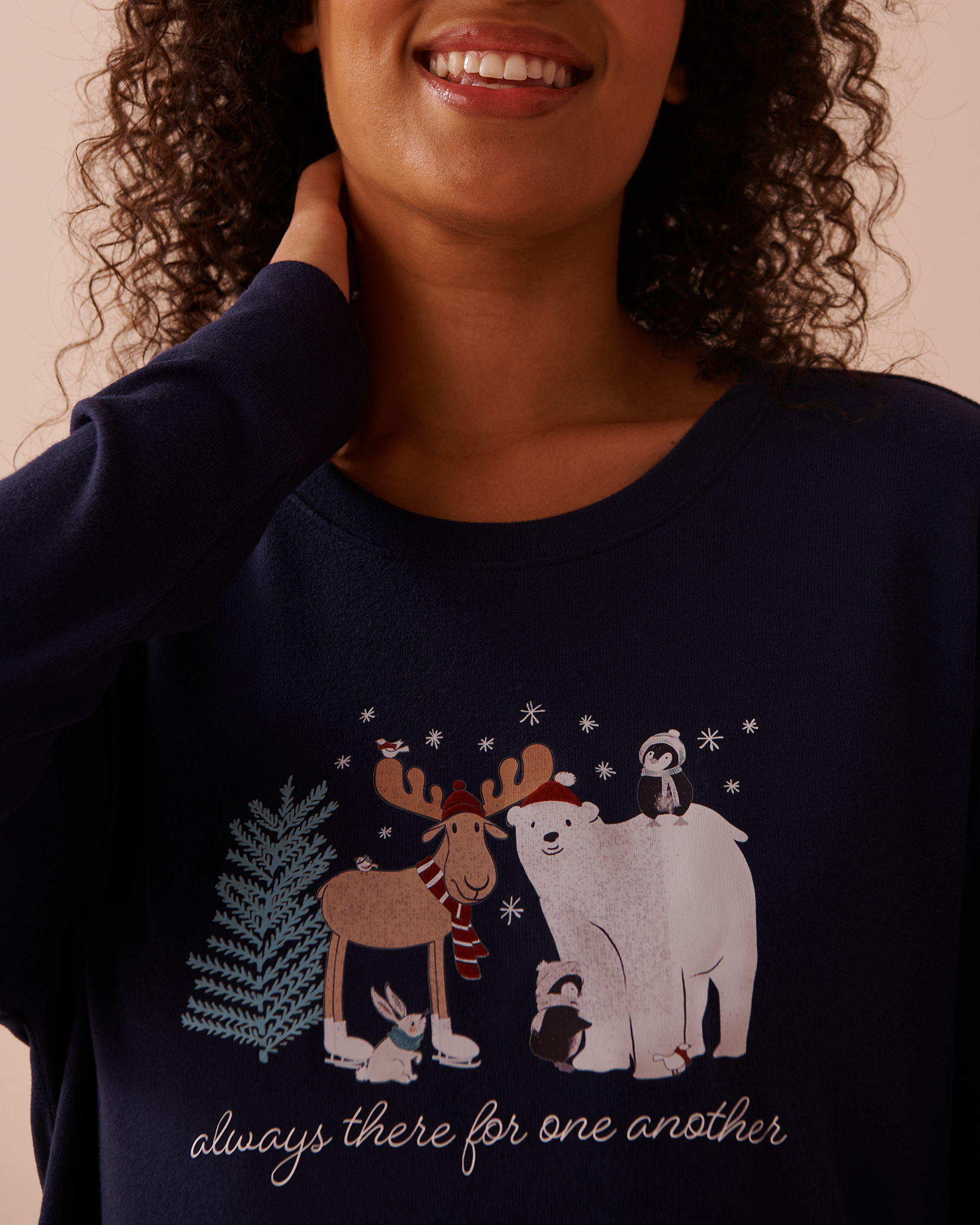 A playful pajama top inspired by winter's charm and magical atmosphere, made from a soft fabric. Designed for your comfort with recycled fibers.