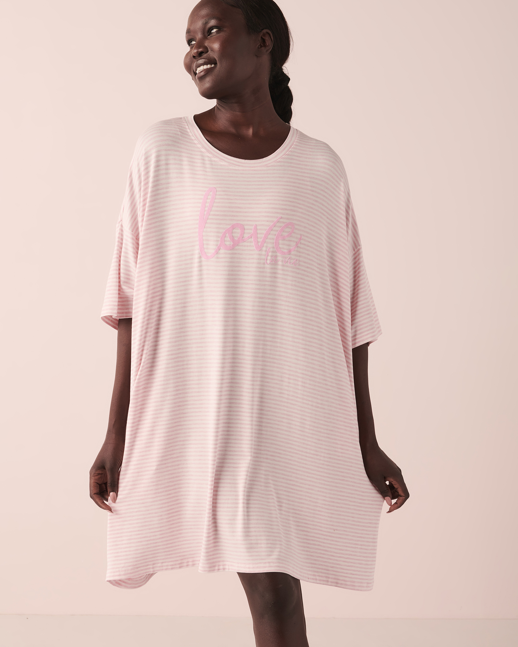 Bamboo so smooth! Bamboo oversized sleepshirt with flocking print at front.