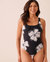 BLACK HIBISCUS Square Neck One-piece Swimsuit