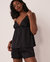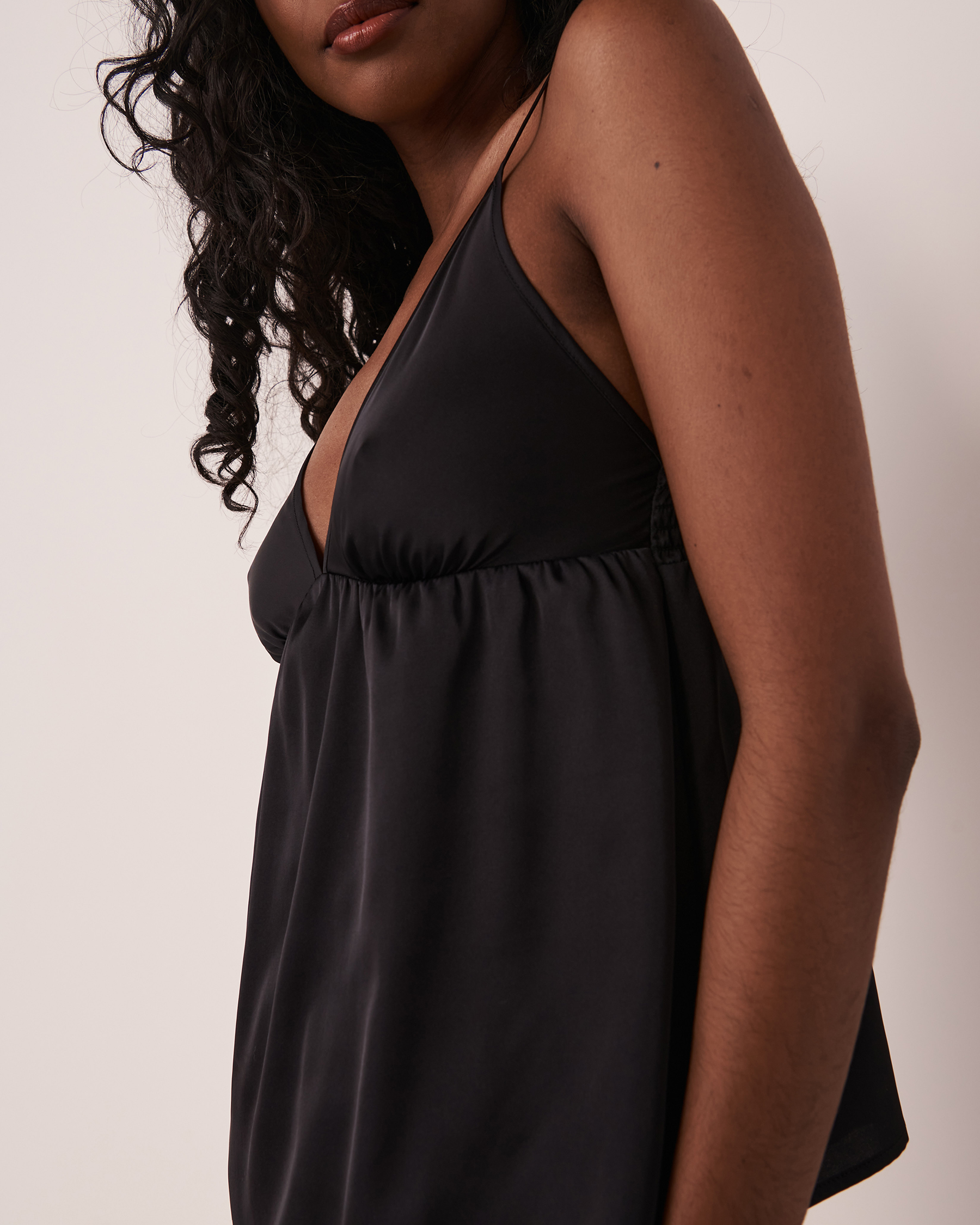 A must have in your wardrobe! Black satin cami with deep plunge style and adjustable thin straps.