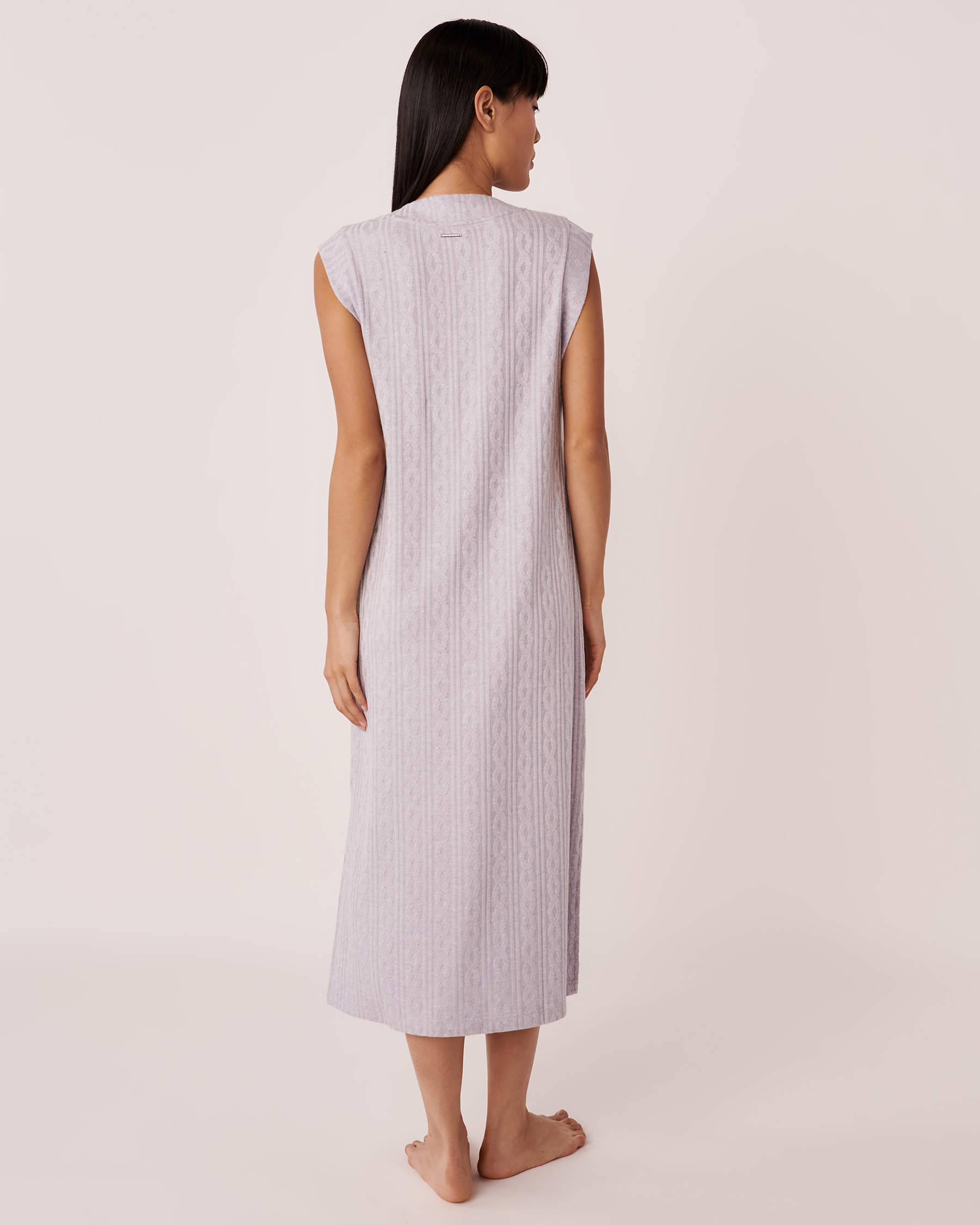 Cozy in Lounge! Cable knit cap sleeve long dress with varsity neckline.