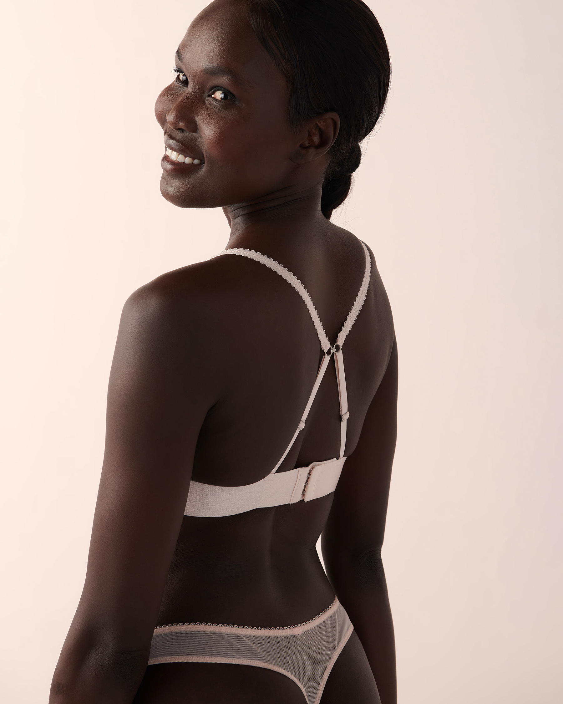 Our classic bralette, now in a fresh print and embroidered mesh.