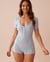 A floral print that'll have you dreaming of sunny days is paired with a soothing hue to bring you moments of pure comfort and serenity. The delicate pointelle knit, adorned with openwork patterns, and the lettuce trim on this romper will win over those who love little, refined details.