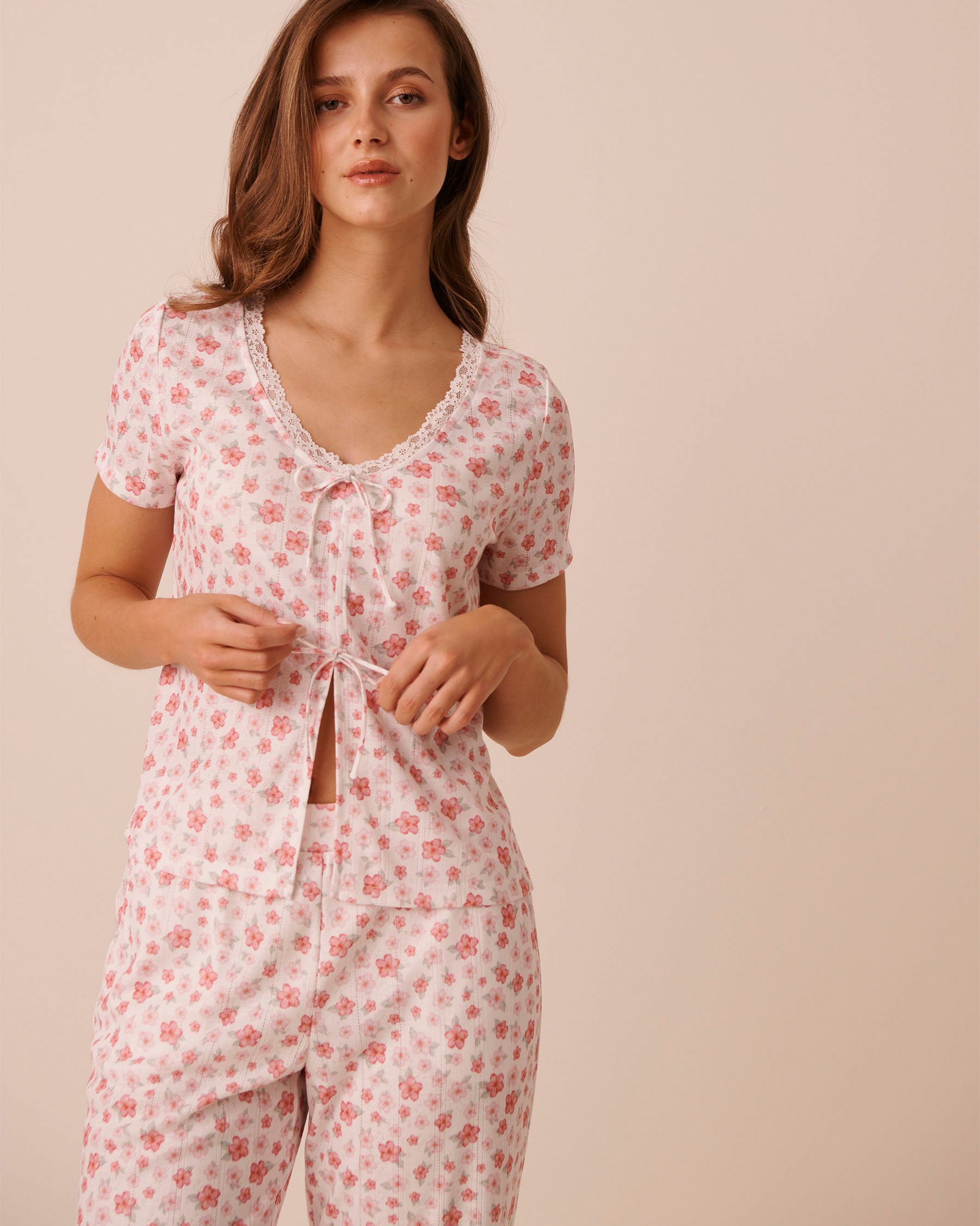 Our dream pajamas… The pointelle knit of this t-shirt is so light and delicate. And this print is blooming with charm.