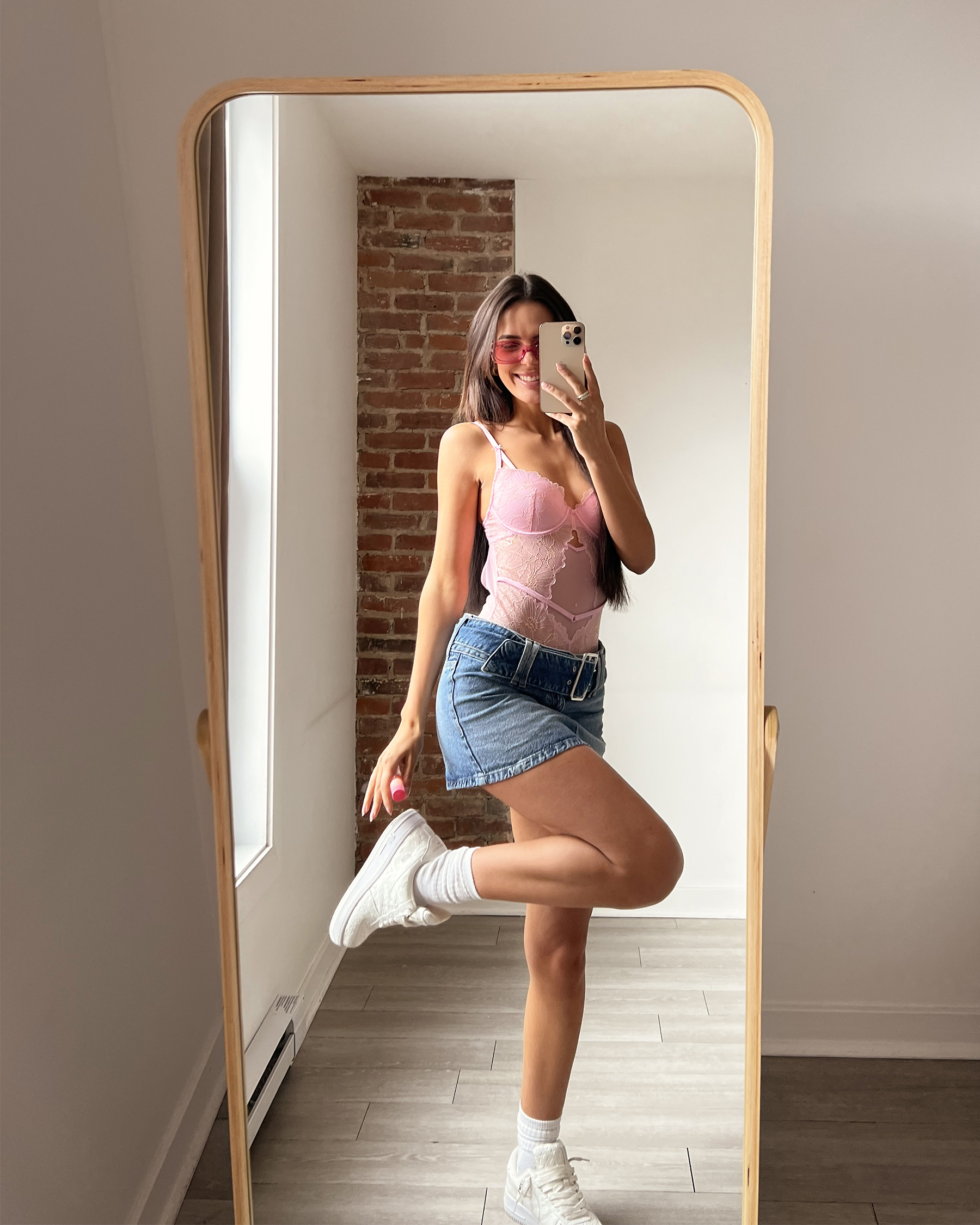 Katheryne (straight hair) wears a size L; Sasha (curly hair) wears a size S