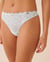 Dainty florals and scalloped edges. One look at this thong and you’re smitten.