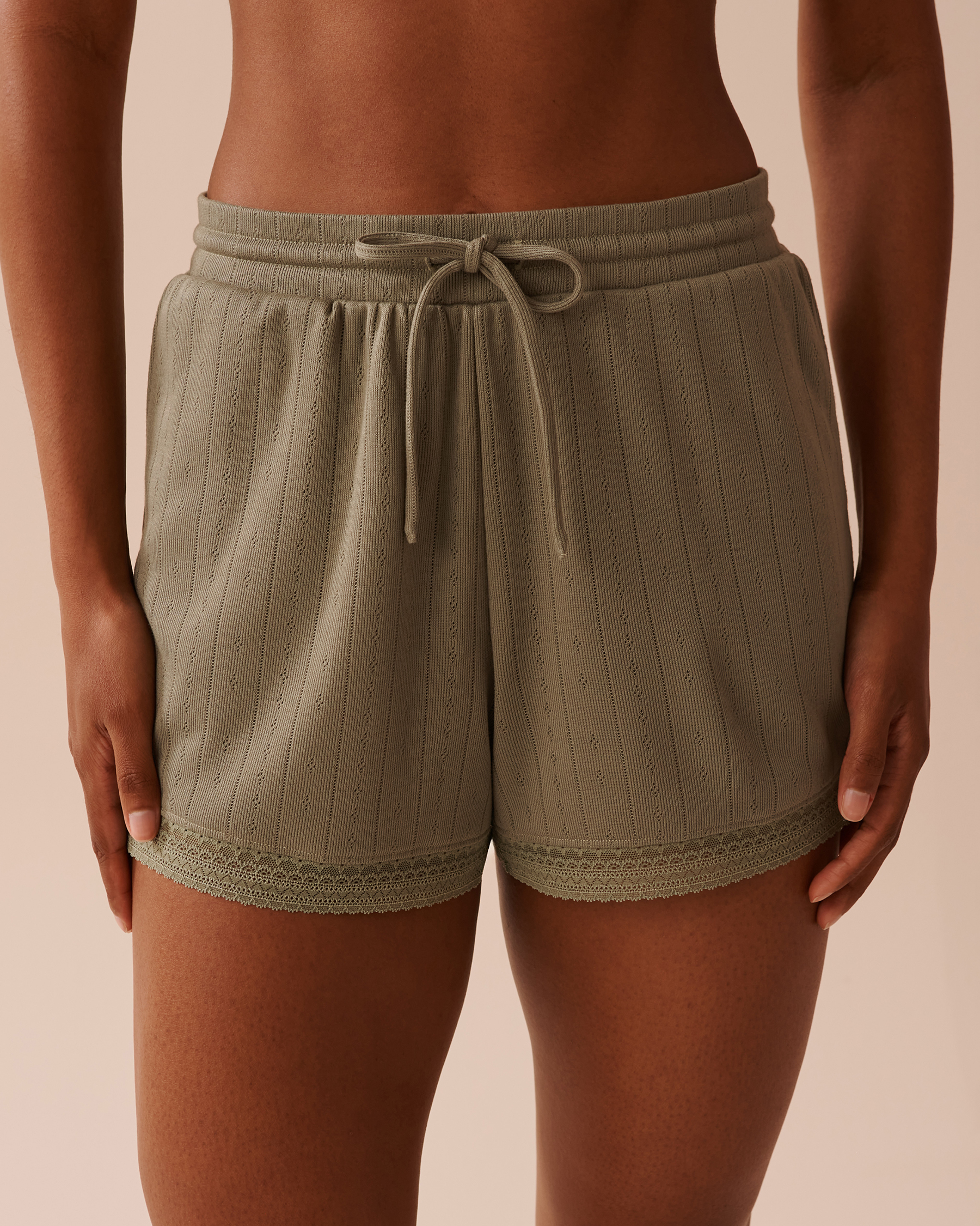 Lace Trim Pointelle Knit Shorts