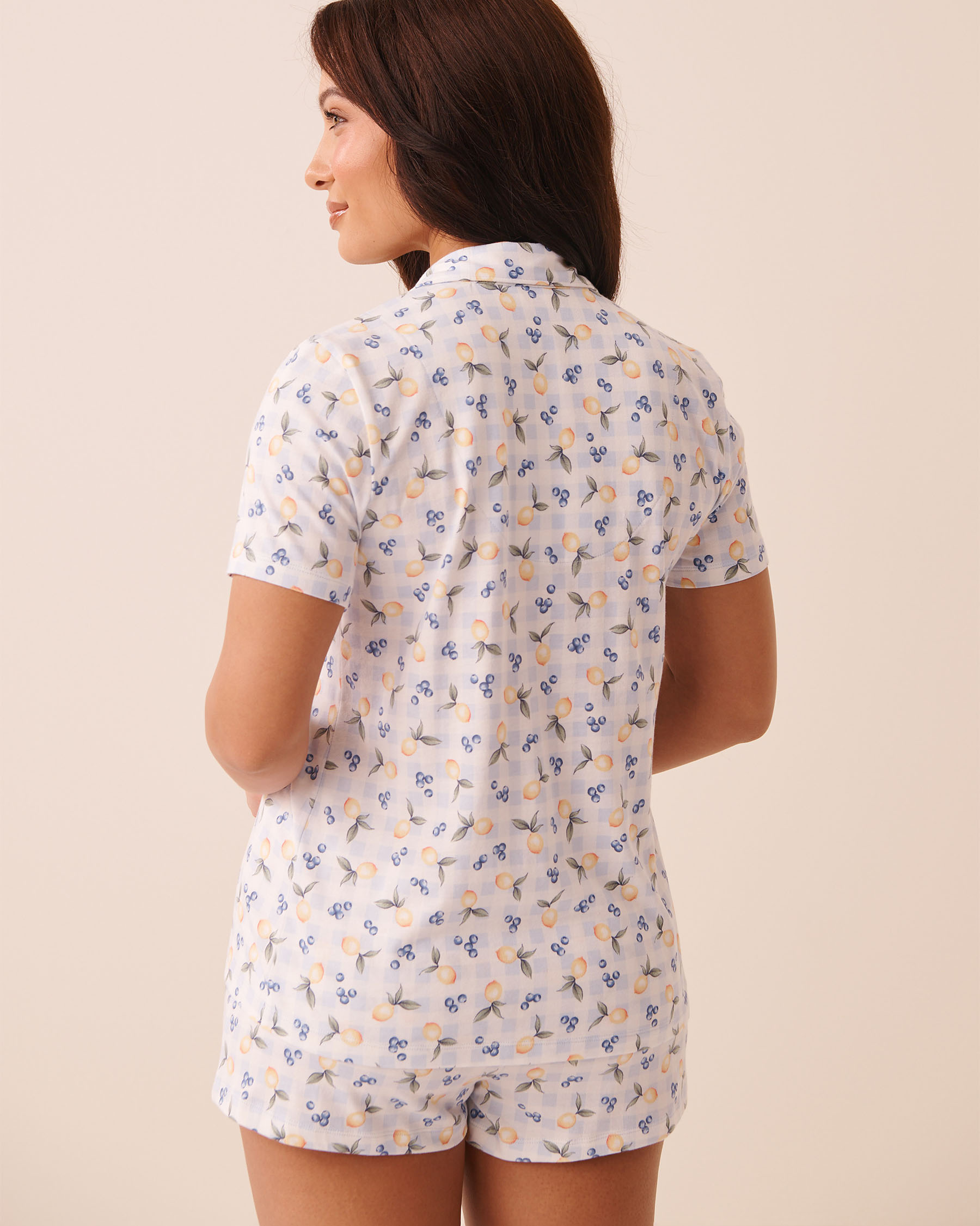 Lemon Gingham Print Shirt PJ Set
