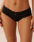 A delicate mix of sheer and opaque adds to the charm of the floral lace trim. This cheeky panty, crafted with smooth, stretchy microfiber, feels light and comfy against the skin.