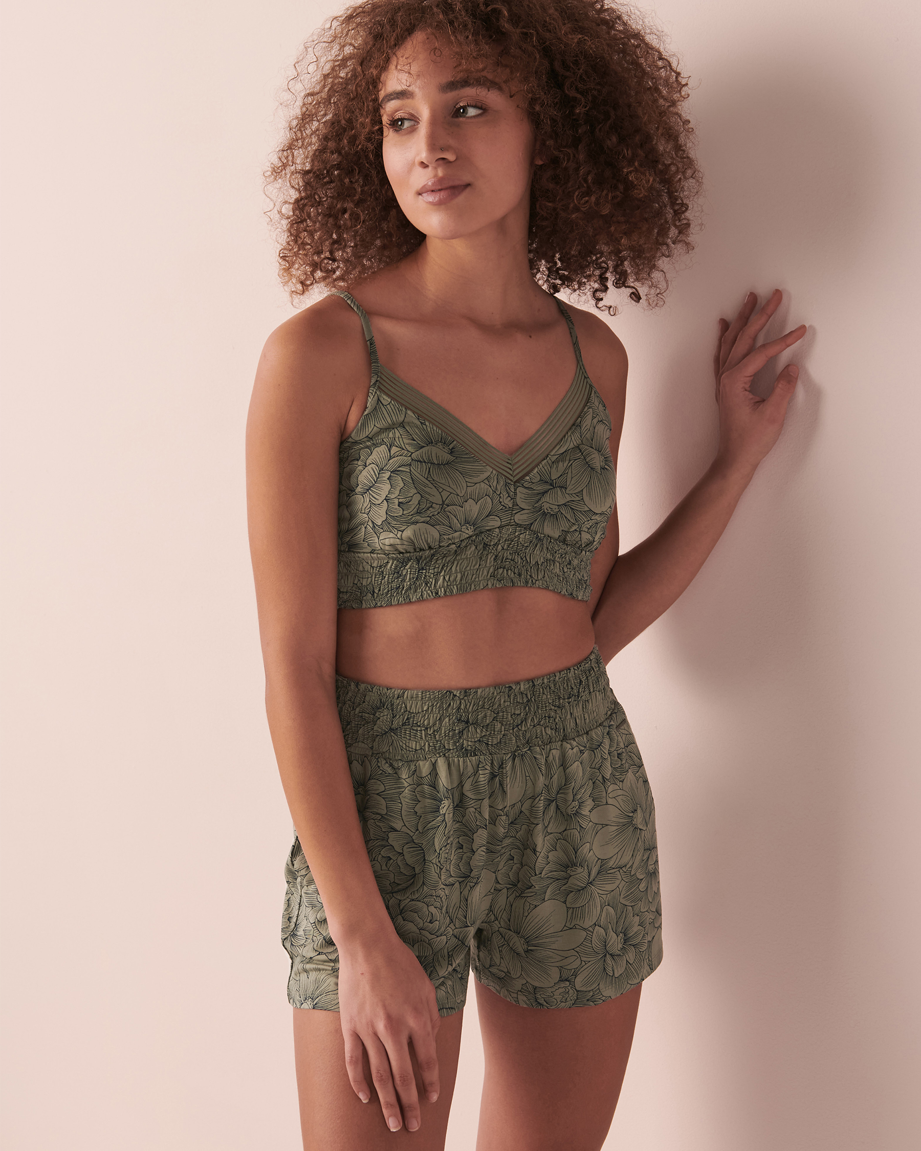 Enjoy the smooth, soft feel of this botanical-inspired crop cami! It’s perfect to lounge in style and comfort.