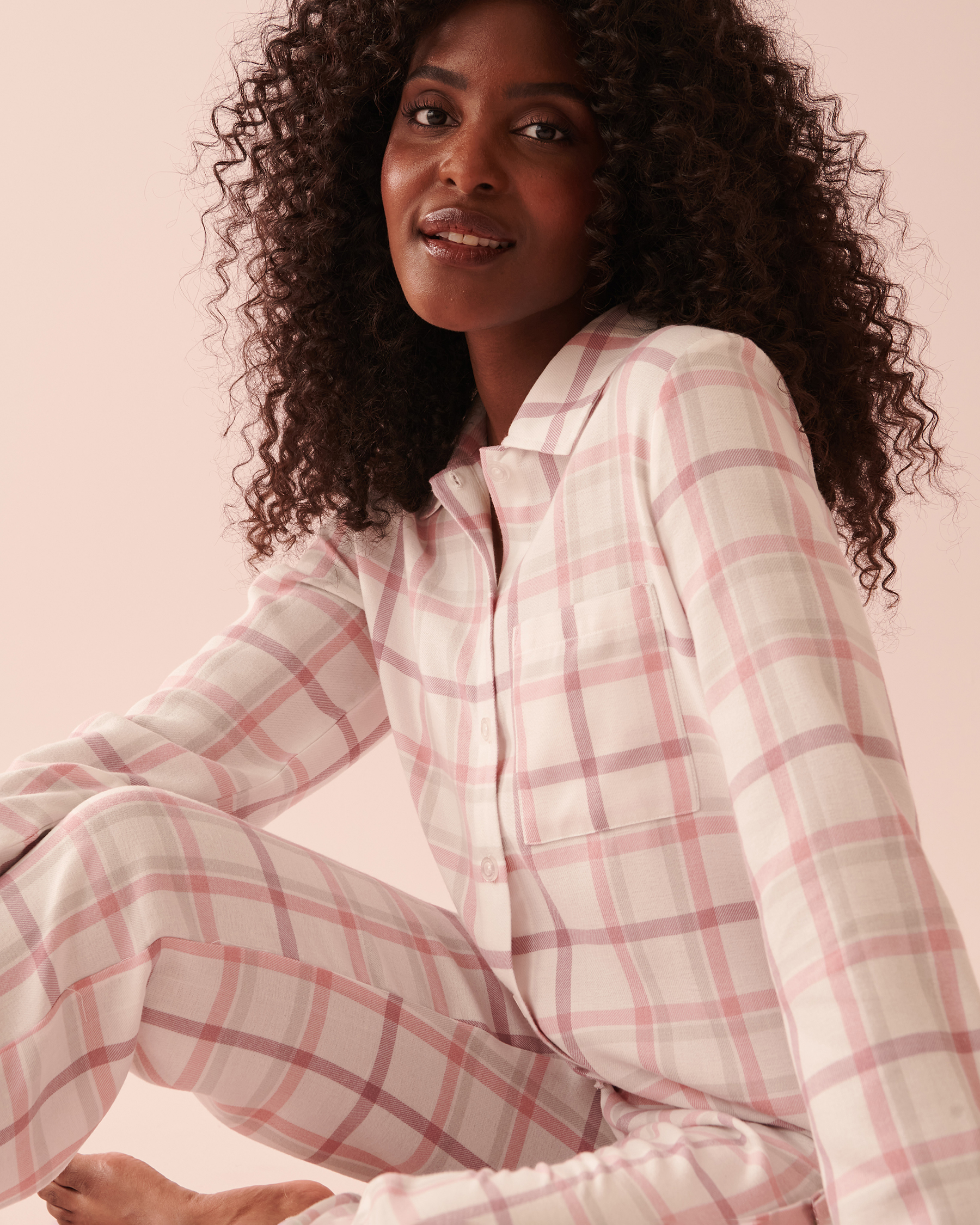 Plaid party! This comfortable button-down pyjama shirt is designed for style and relaxation. With its classic, timeless plaid pattern and its soft construction, it offers a delightful lounging experience. Pair it with our matching pants for a complete plaid look!