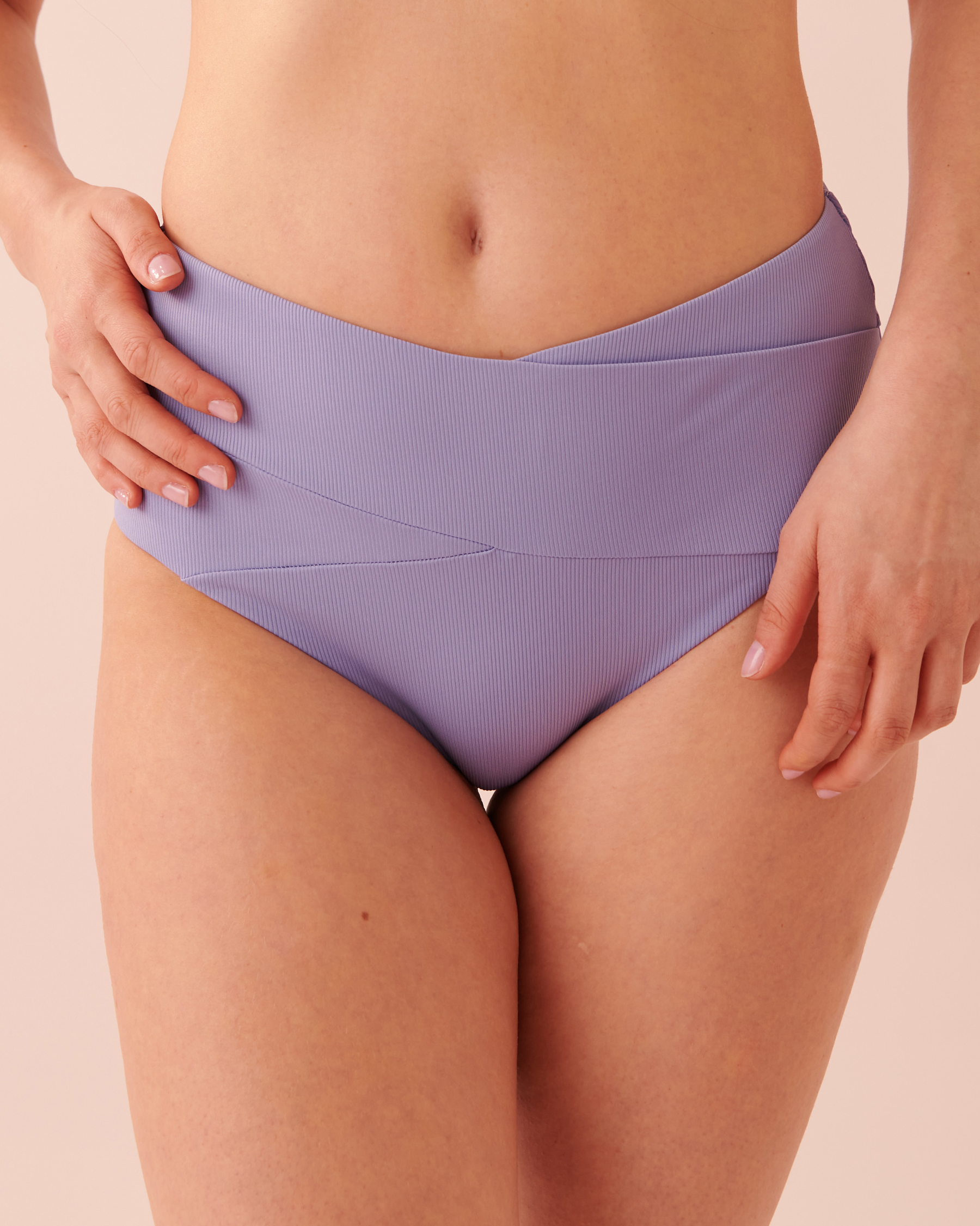 A gorgeous colour that brings a sweet touch of romance to this textured high waist bikini bottom. With its flattering and never out of style cut, it will soon become one of your summer essentials. Pair it with the bikini tops or mix and match for a unique look.
