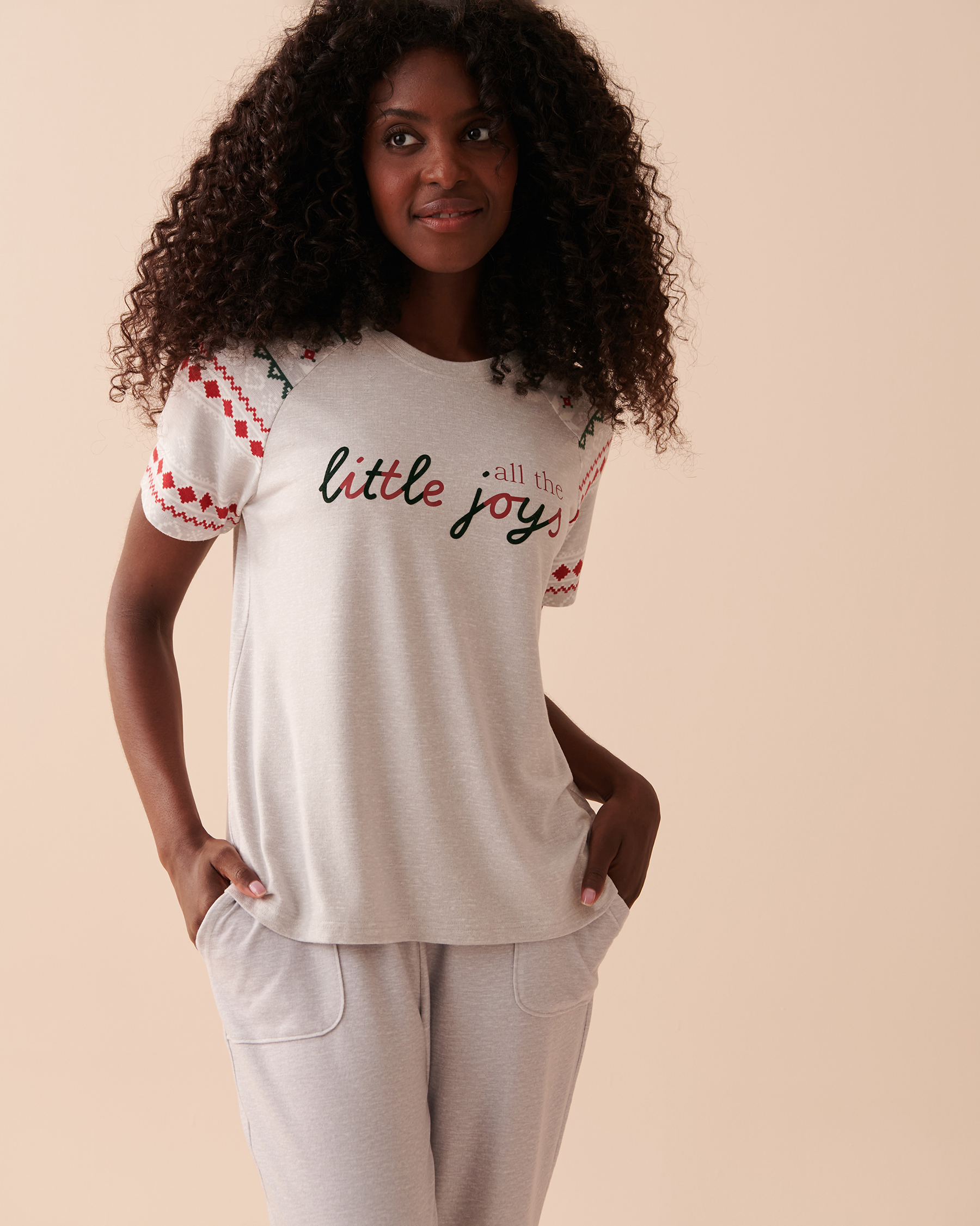 Add a touch of timeless charm to your pajamas with this cozy crew-neck t-shirt ensuring nights of softness and tranquility for a dreamy sleep.