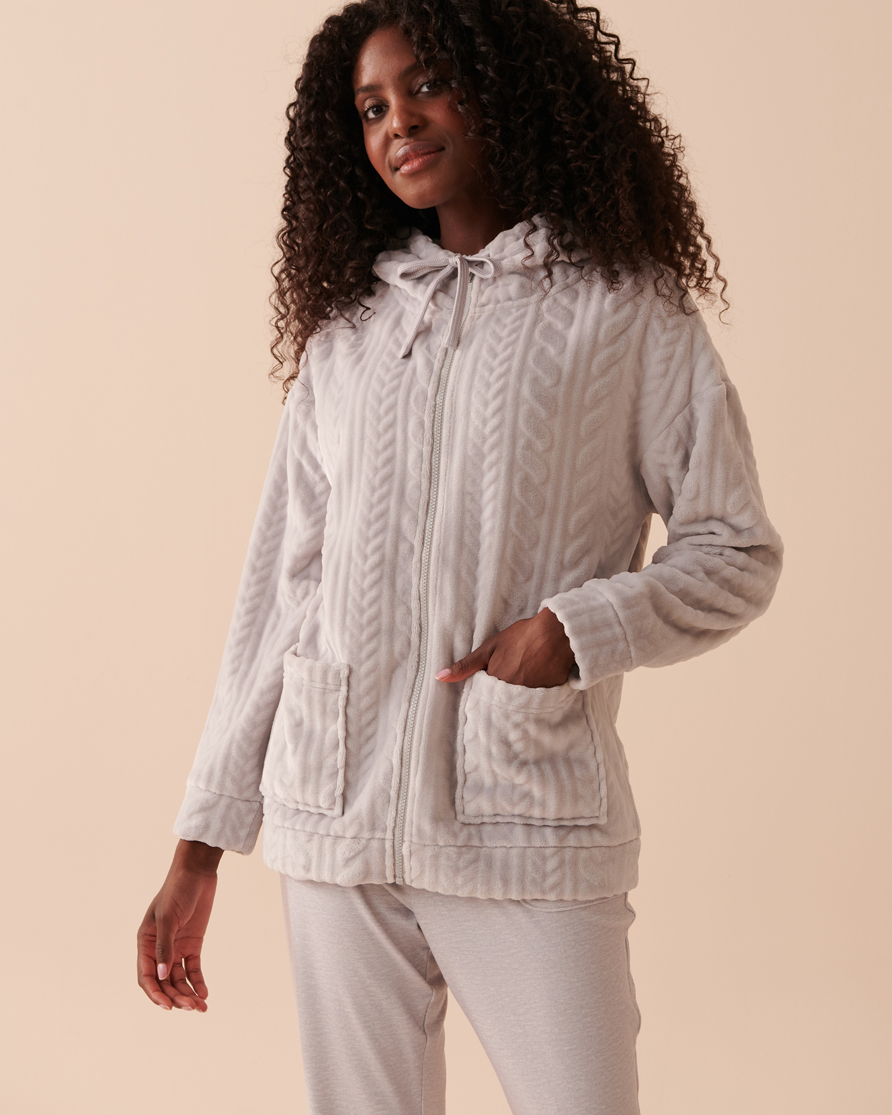 Nestle into comfort with our knit-effect soft hooded cardigan – a cocoon of coziness that will be your go-to for the winter season.
