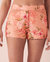 Indulge in the delightful charm of our lace-trim shorts, where a vibrant coral hue intertwines with luxurious floral patterns.