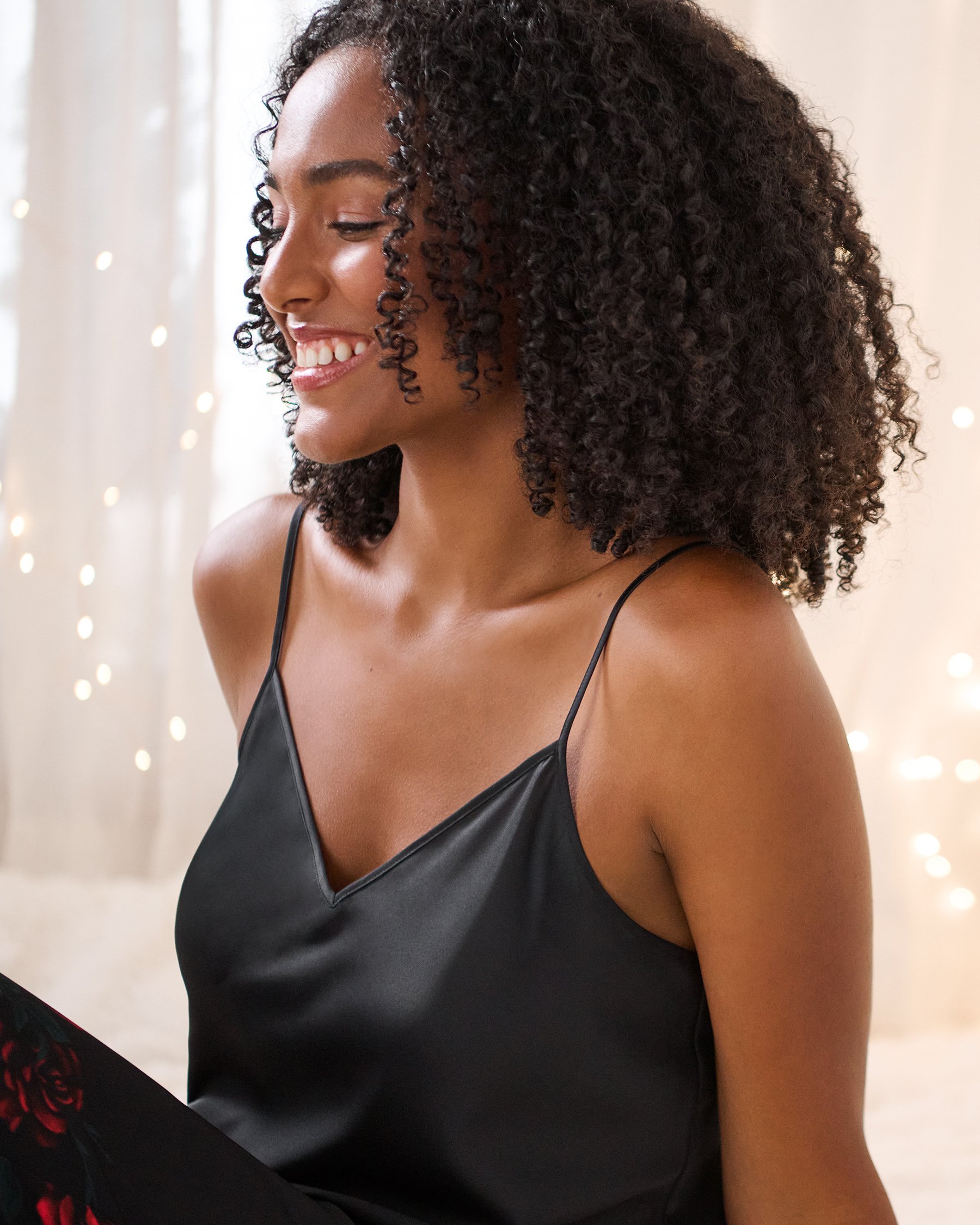 A satin cami where deep black meets the vibrant glow of red roses. Refined in its cut, graceful in its lines, and delicate in every finish, each detail reflects forty years of passion and artistry at La Vie en Rose. Paired with its matching pieces, this creation elevates intimate moments and turns them into something to truly celebrate.
