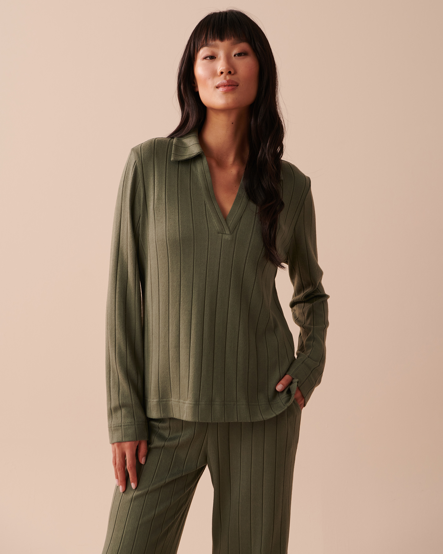 Unwind in effortless style with this lounging long-sleeve shirt, offering a perfect blend of comfort and chic versatility.