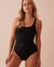 Ribbed Square Neck Belted One-Piece Swimsuit