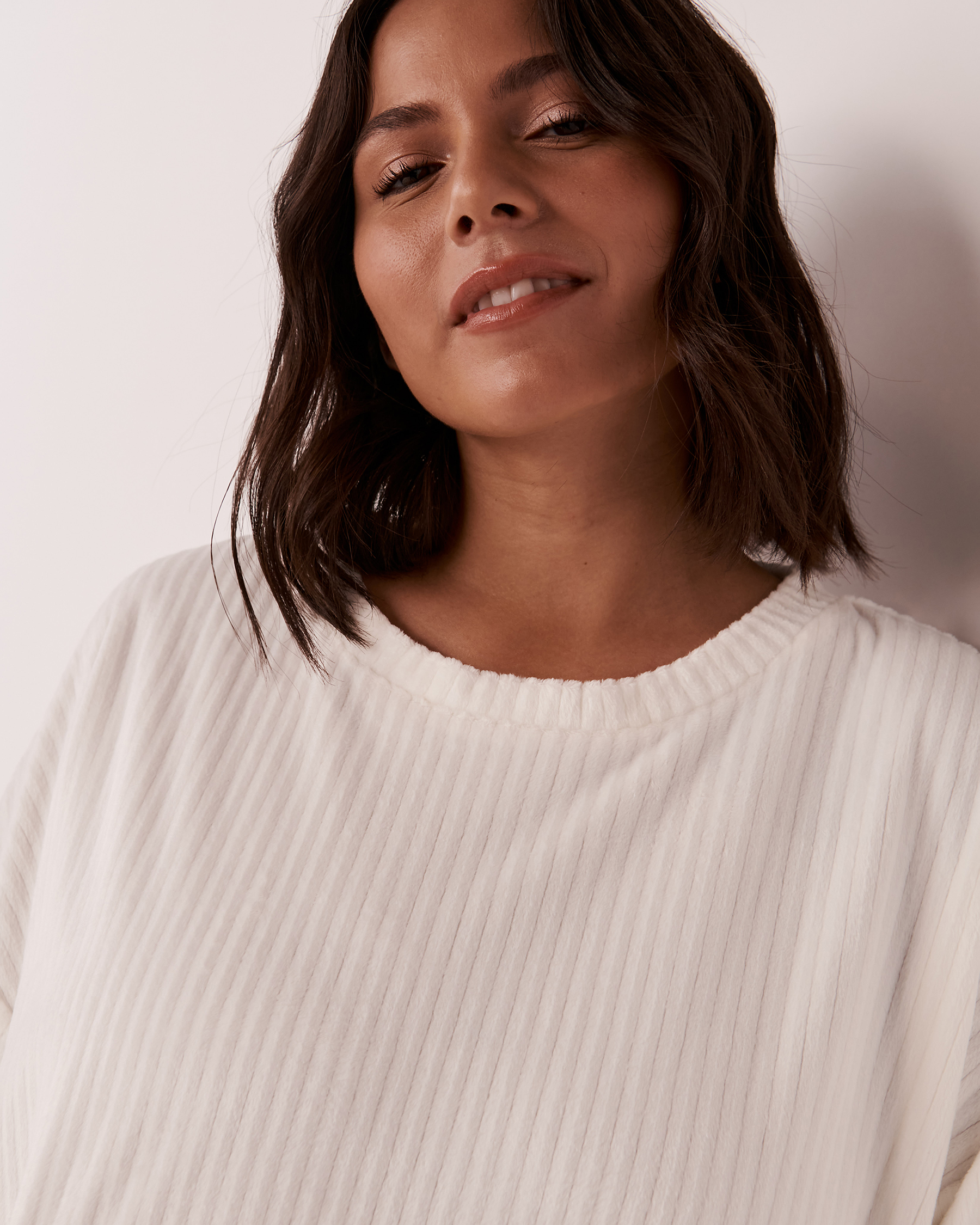 So soft! Ribbed velour long sleeve shirt with kangaroo pocket.