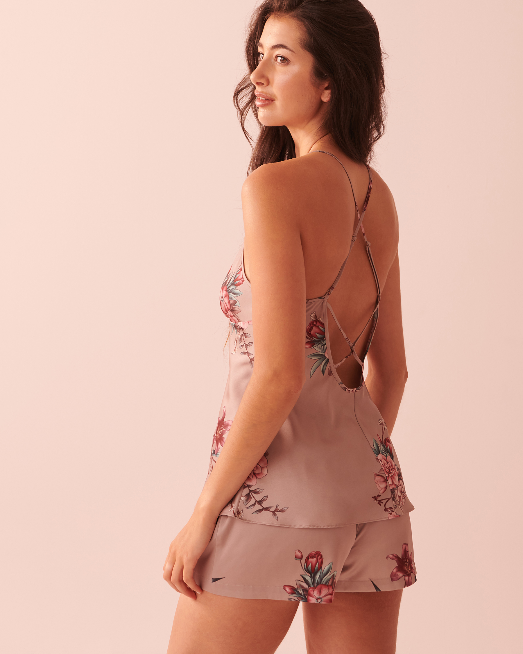 Slip into this satin cami and feel its smooth embrace against your skin. Delight in the poetic beauty of radiant autumn blossoms!