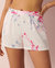 White garden! Satin shorts with side pockets and delicate floral print.