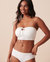 A versatile bandeau bikini top with a cute texture that's just perfect for catching rays! It's also adjustable in many ways: both the straps and the pads are removable to fit your mood, and it has a drawstring above the bust for better support.