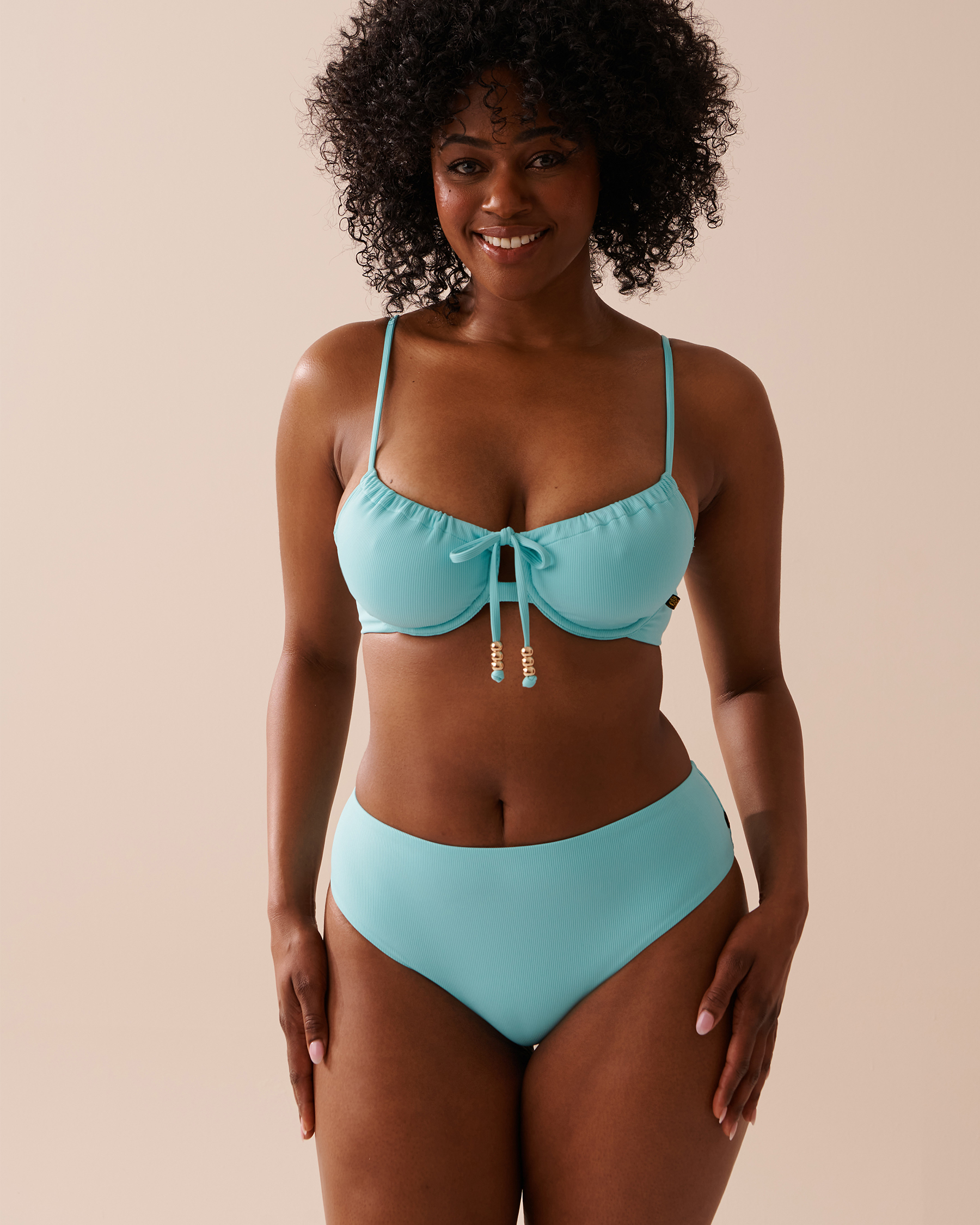 Cute colours and patterns, unmatched comfort & a flattering, trendy cut – this textured swimsuit will be your go-to on and off the beach! With underwires, adjustable straps and a shirred effect, this cute plunge bikini top perfectly fits your figure and highlights your bust! To take good care of your favourite swimwear, visit our Care Instructions page.