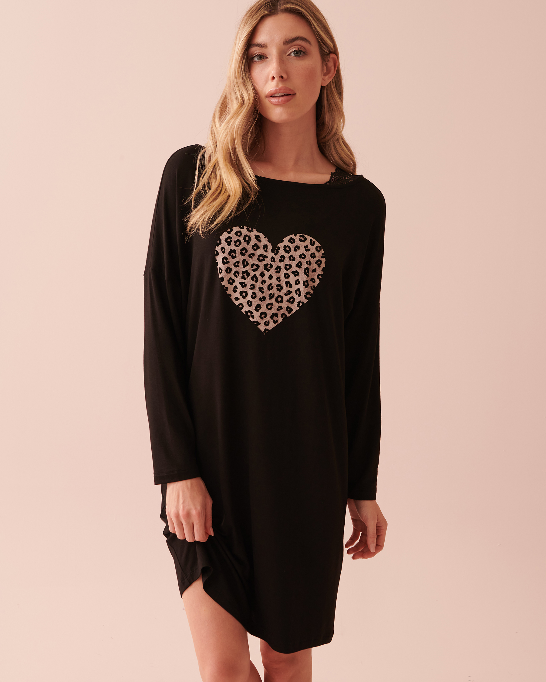 Unleash your wilder side with this soft jersey long sleeve sleepshirt! Adorned with love, it will show off your affectionate nature with comfort.