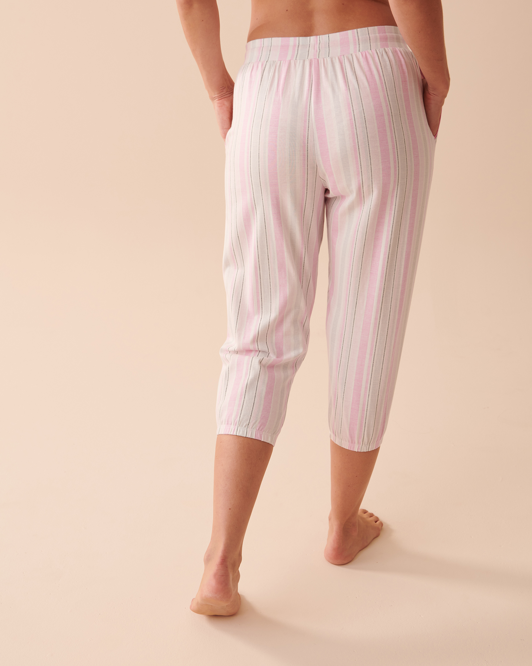 Cute capris with pink stripes on a super soft, breathable cotton fabric for the coziest, comfiest sleep you've ever had!