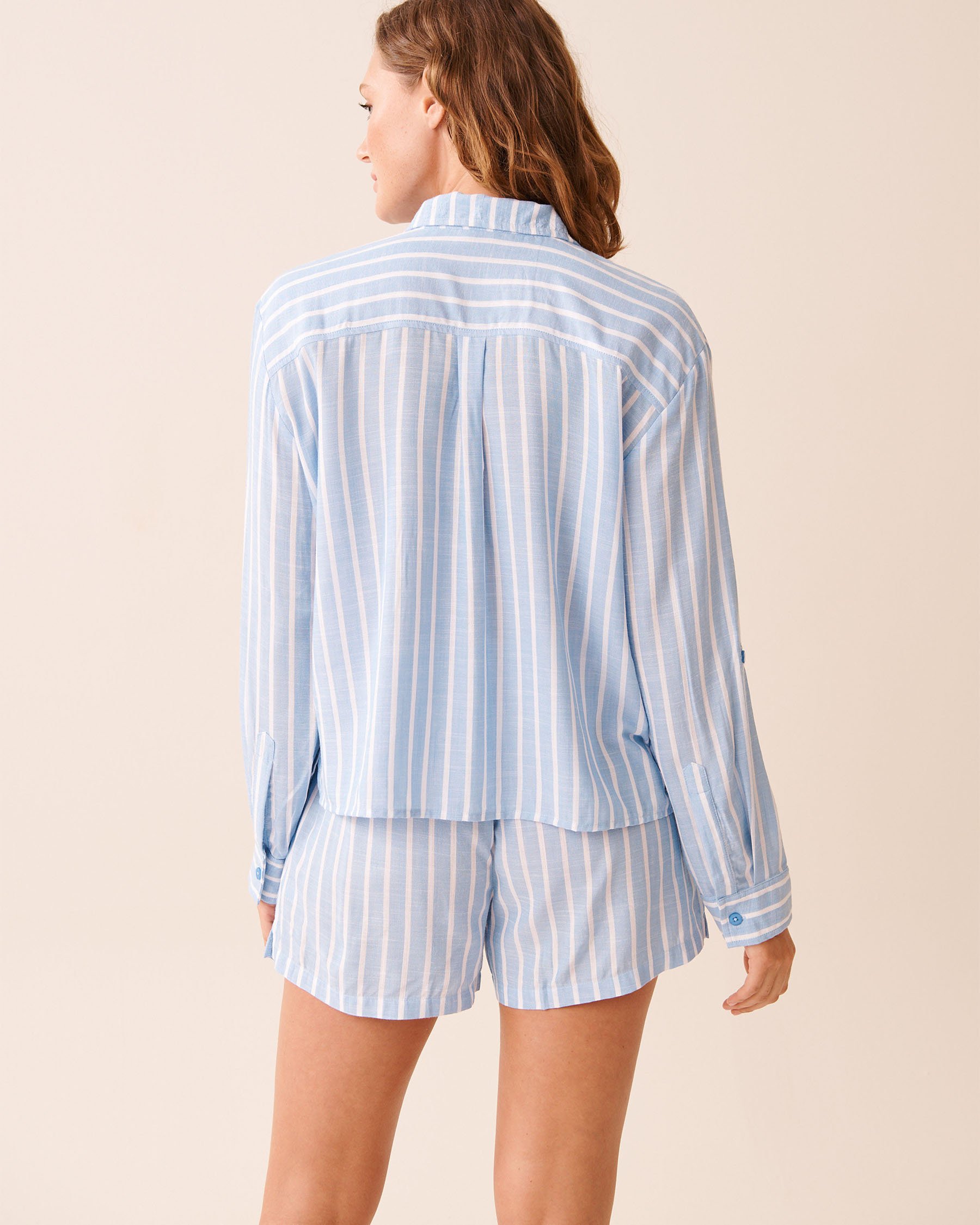 For barefoot strolls on sun-warmed sand or coffee breaks that stretch into the afternoon, this striped shirt wraps you in summer’s gentle embrace, inviting you to slow down, wander freely, and savour every moment.