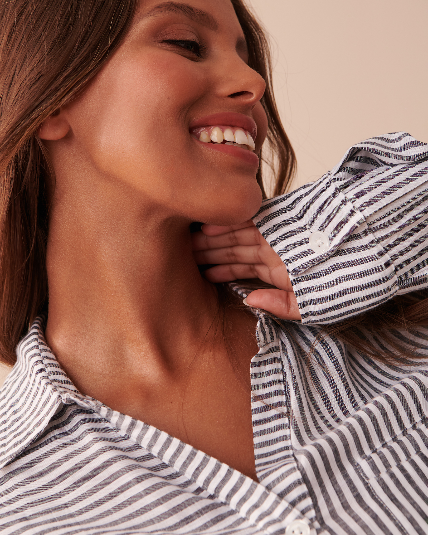 Classic, retro stripes with a modern twist! This comfy button-down shirt is perfect for your lazy days by the beach.