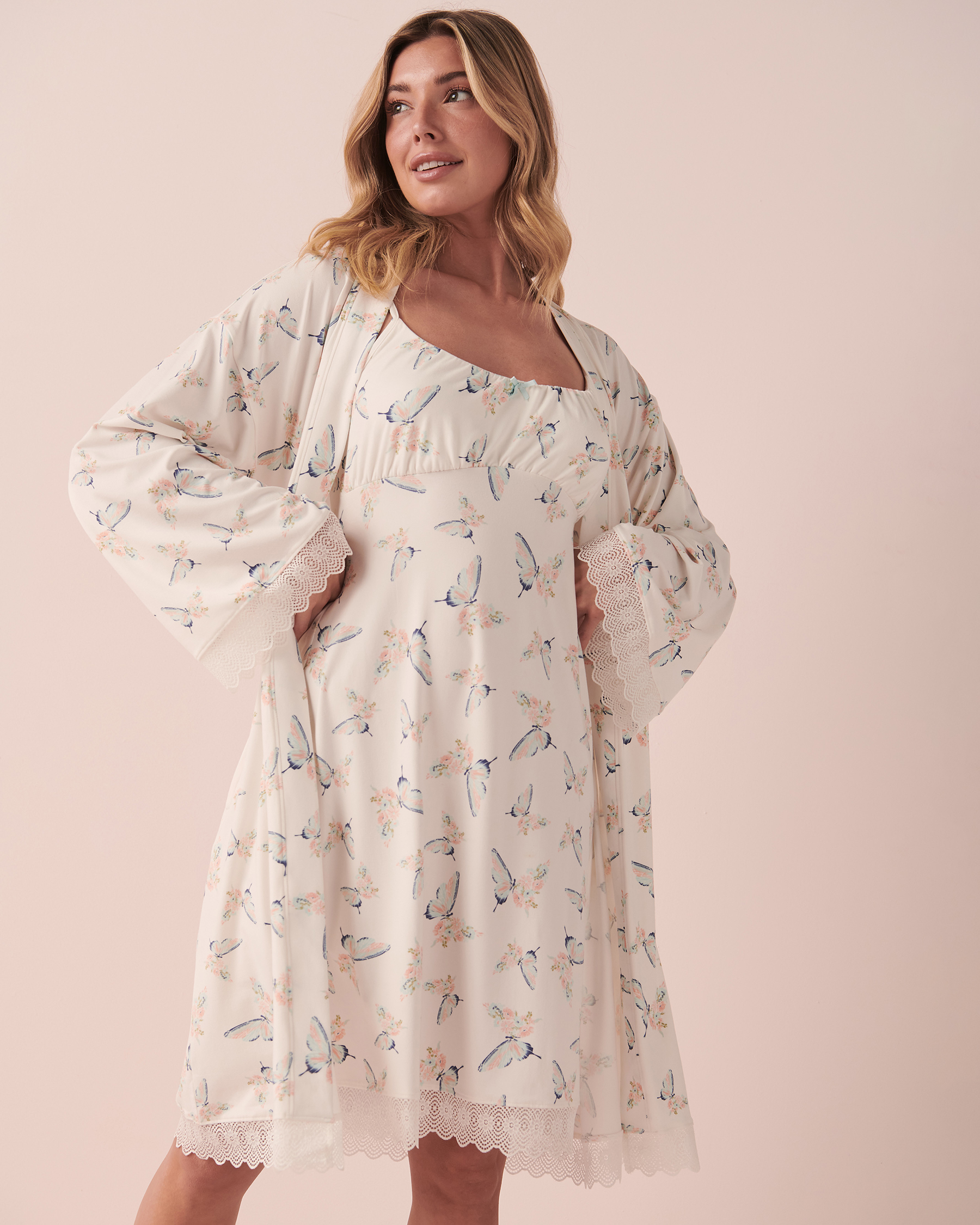 It’s so soft you’ll want to live in it! Endless comfort, pretty patterns, soothing colours, and a delicate lace, everything in this kimono invites you to relax!
