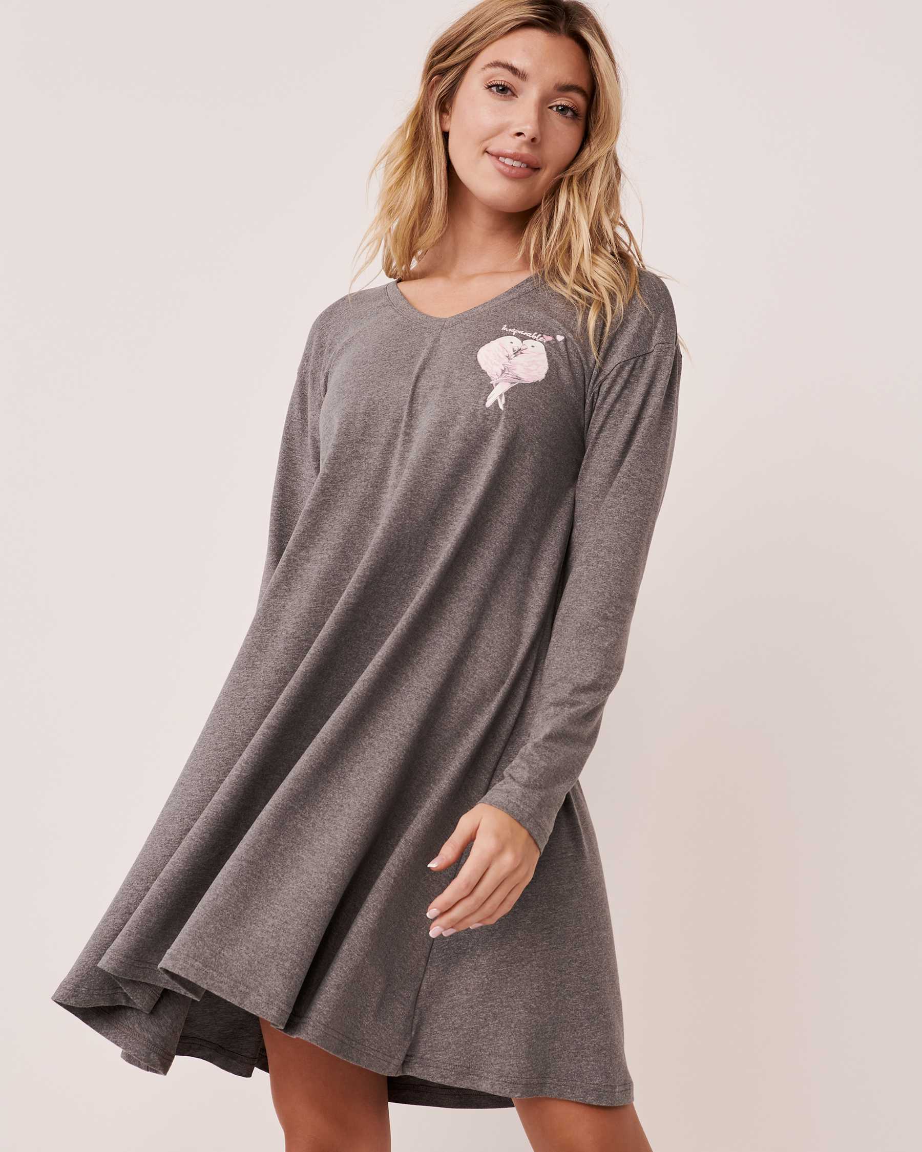 Love at first sight! Super soft v-neck sleepshirt with flocking print at front.