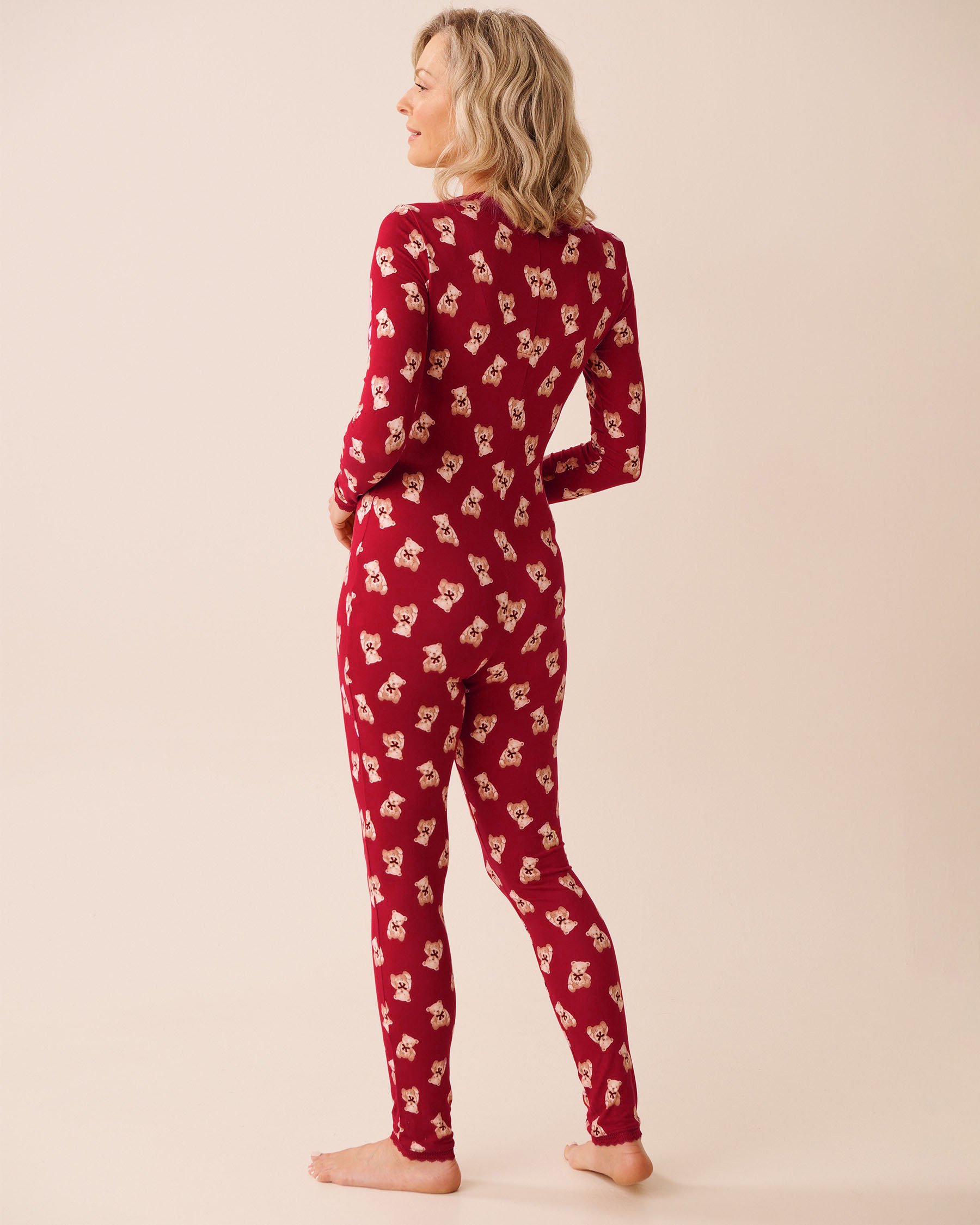 Love our peachy dream pajamas? Get ready to be obsessed with this figure-hugging jumpsuit. It's fitted for a flattering look but still feels like a dream. Plus, it comes in the cutest teddy bear print.