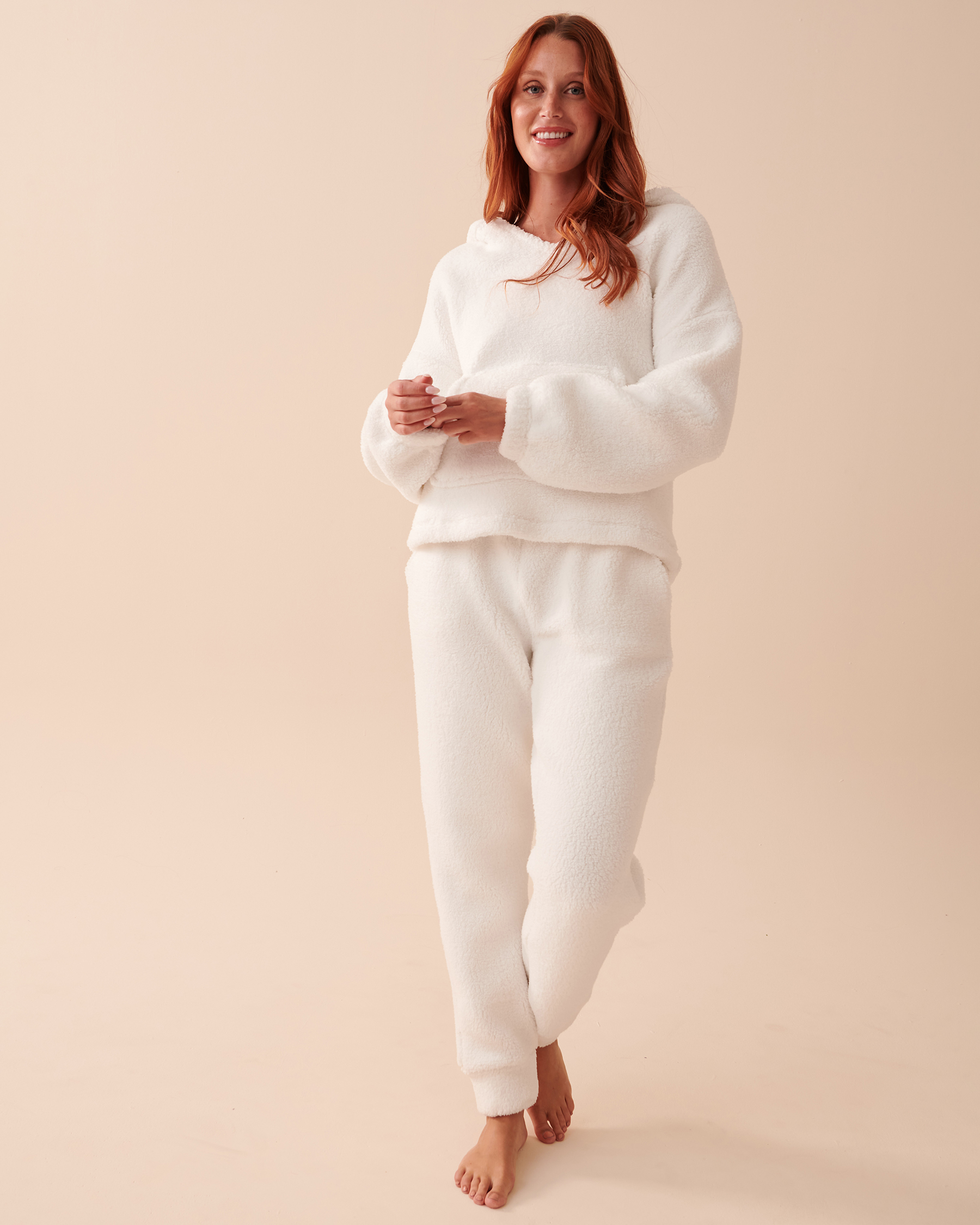 Limitless comfort awaits you with our teddy fur PJ set! Made from a stretch fabric, this dreamy duo will bring you warmth and softness on lazy weekends or relaxing evenings.