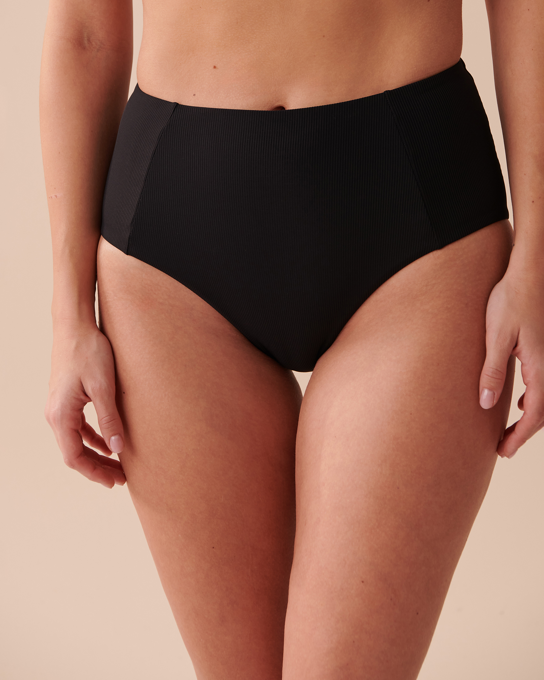 Your future favourite suit is all about texture! This high-waist bikini bottom is all you could wish for. It has a cozy feel and chic and never-out-of-style colours for a natural stylish look! It will be your bestie for all your sunny getaways.