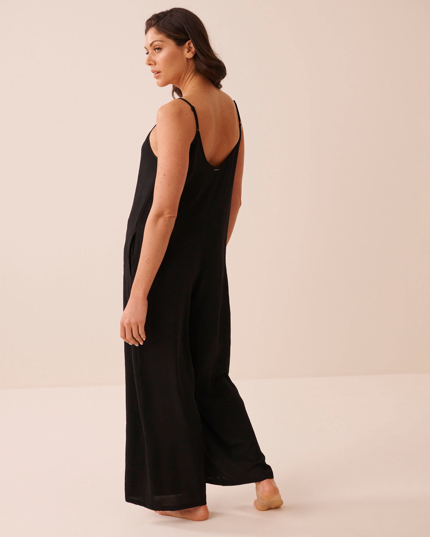Elegant even at ease. That is the promise of this loungewear piece. Featuring a refined crinkle texture that feels entirely intentional, this jumpsuit falls into a beautiful, fluid drape.