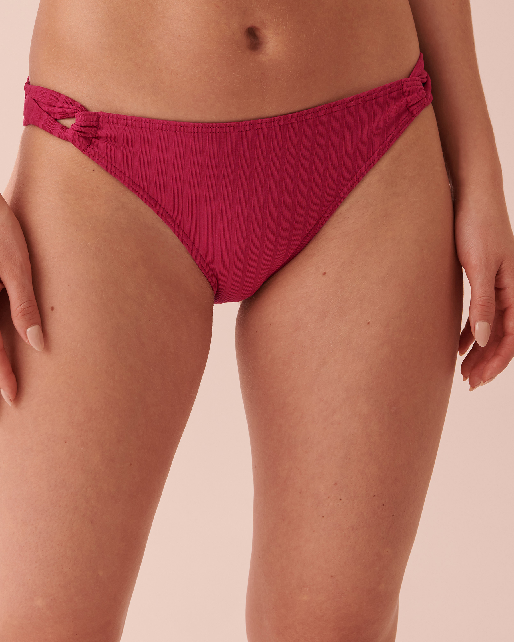 Une couleur éclatante qui vous fera rêver d'un verre de sangria au bord de la piscine! Avec ses côtés plissés et sa coupe taille basse, ce bas de bikini texturé est parfait pour mettre en valeur vos jolies courbes. C'est LE maillot à glisser dans votre valise.