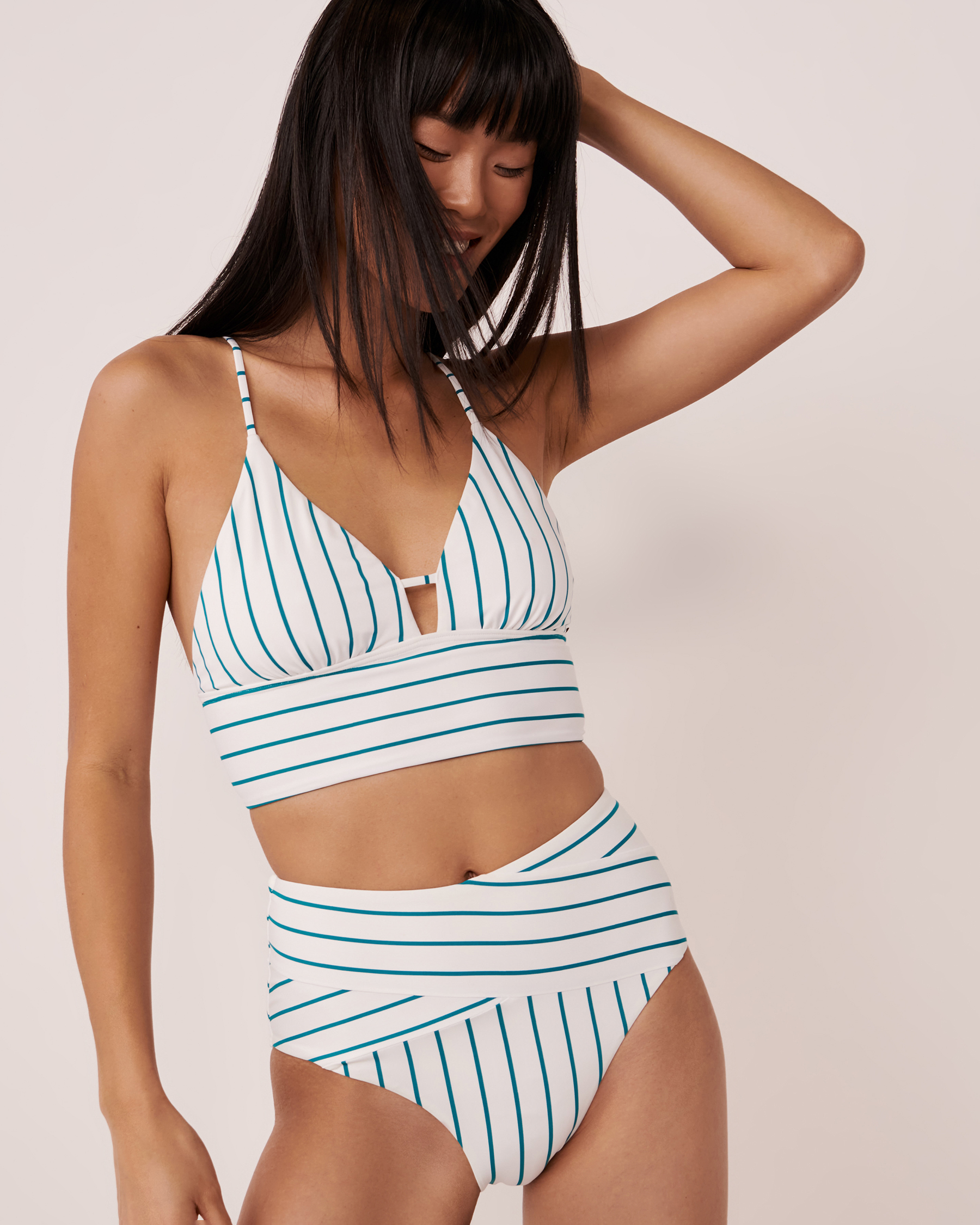 Bas de bikini taille haute croisée en fibres recyclées FANFARE STREAKS