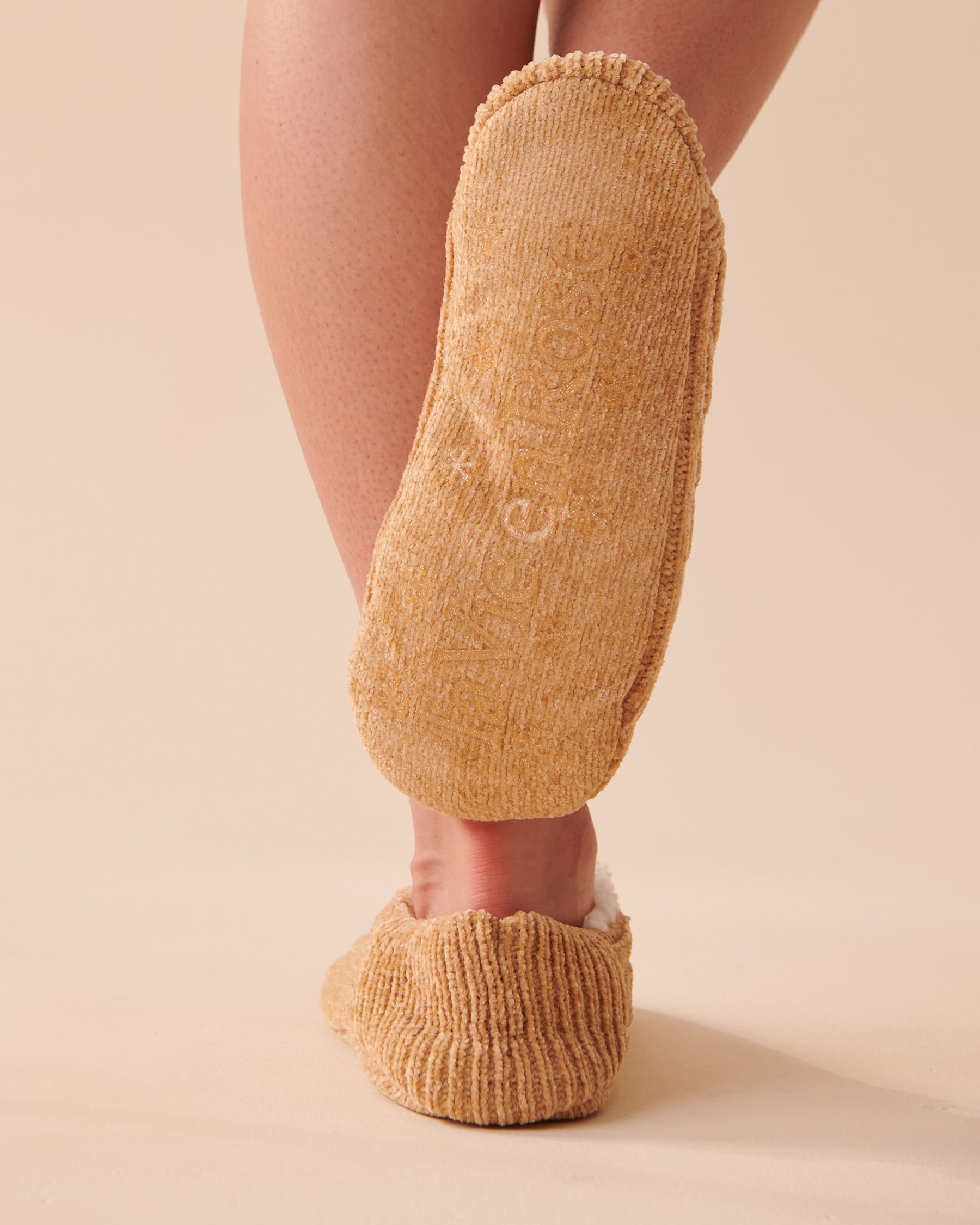 Bas pantoufles en chenille et sherpa