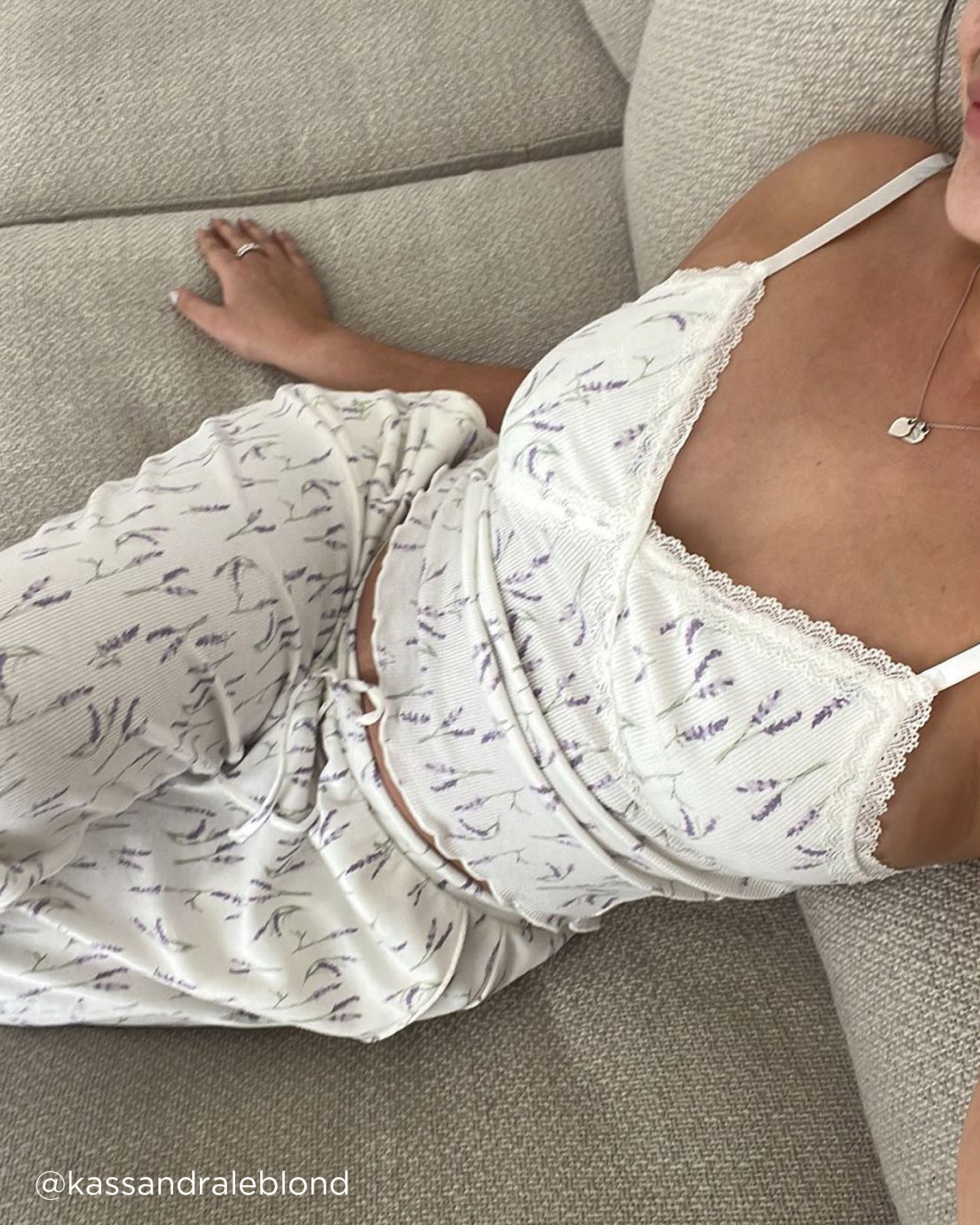 Cette charmante camisole est parfaite pour une nuit douce et confortable! Son tissu côtelé et ses détails en dentelle lui ajoutent une délicate touche vintage.