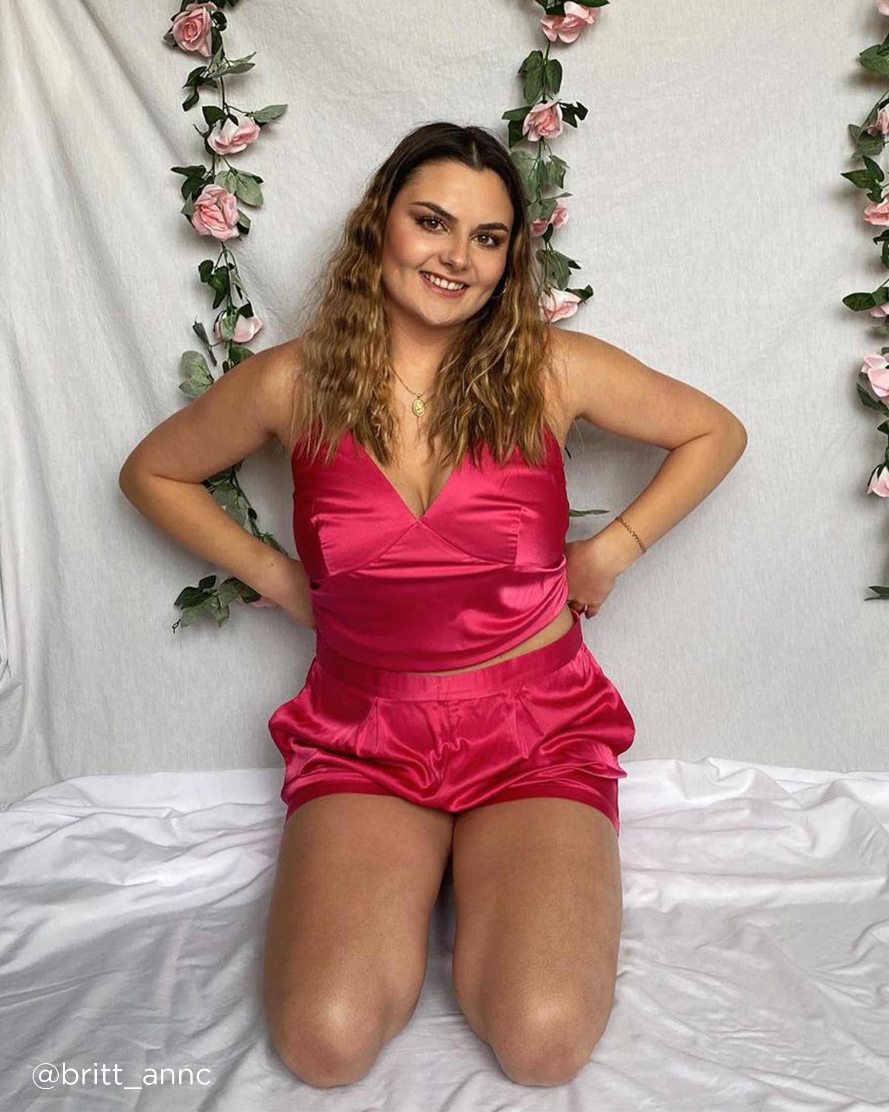 Fuchsia en folie! Camisole en satin avec bretelles minces ajustables.