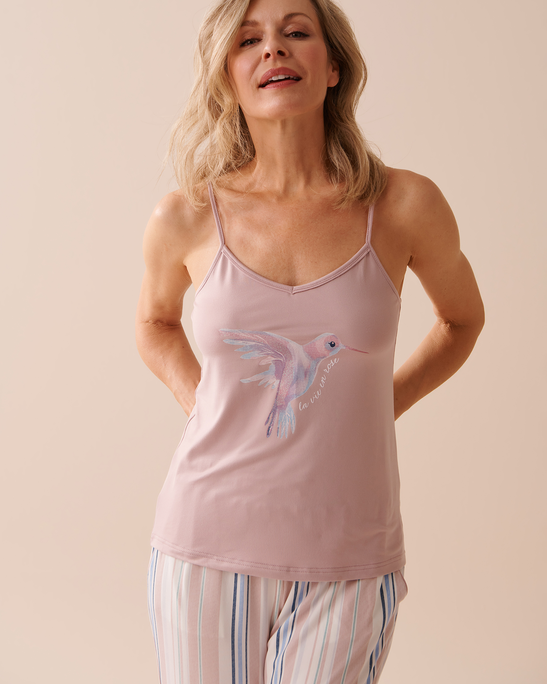 Elle est si douce que vous ne voudrez plus la quitter! Un confort infini, un joli motif et une couleur douce, tout dans cette camisole invite à la détente!