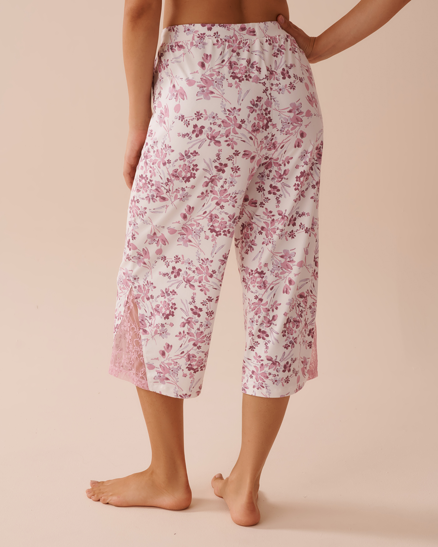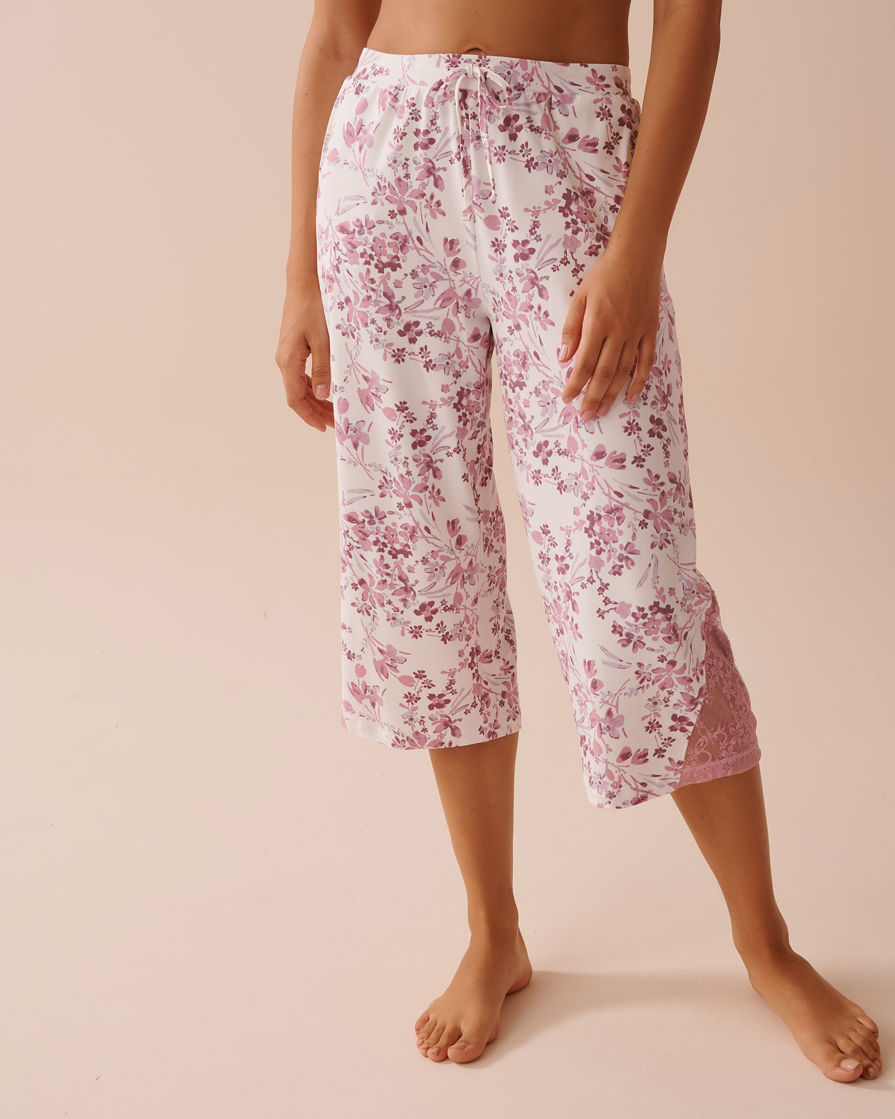 Capri ultra doux à détails en dentelle et fleurs mauves