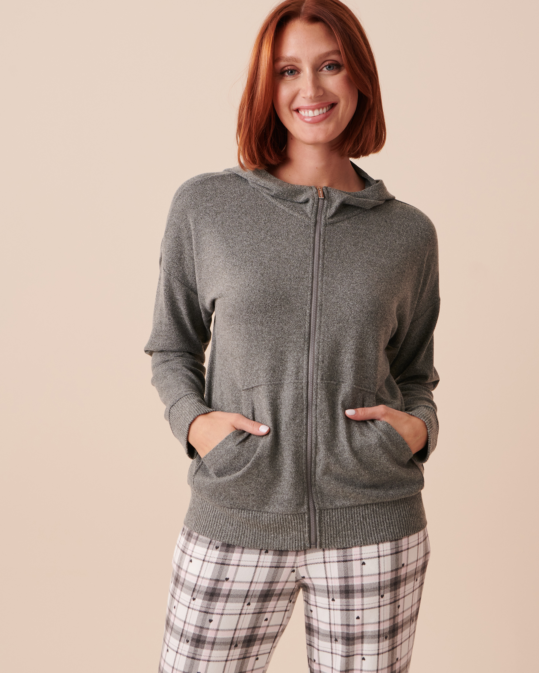 Chandail à capuchon avec fermeture éclair en fibres recyclées