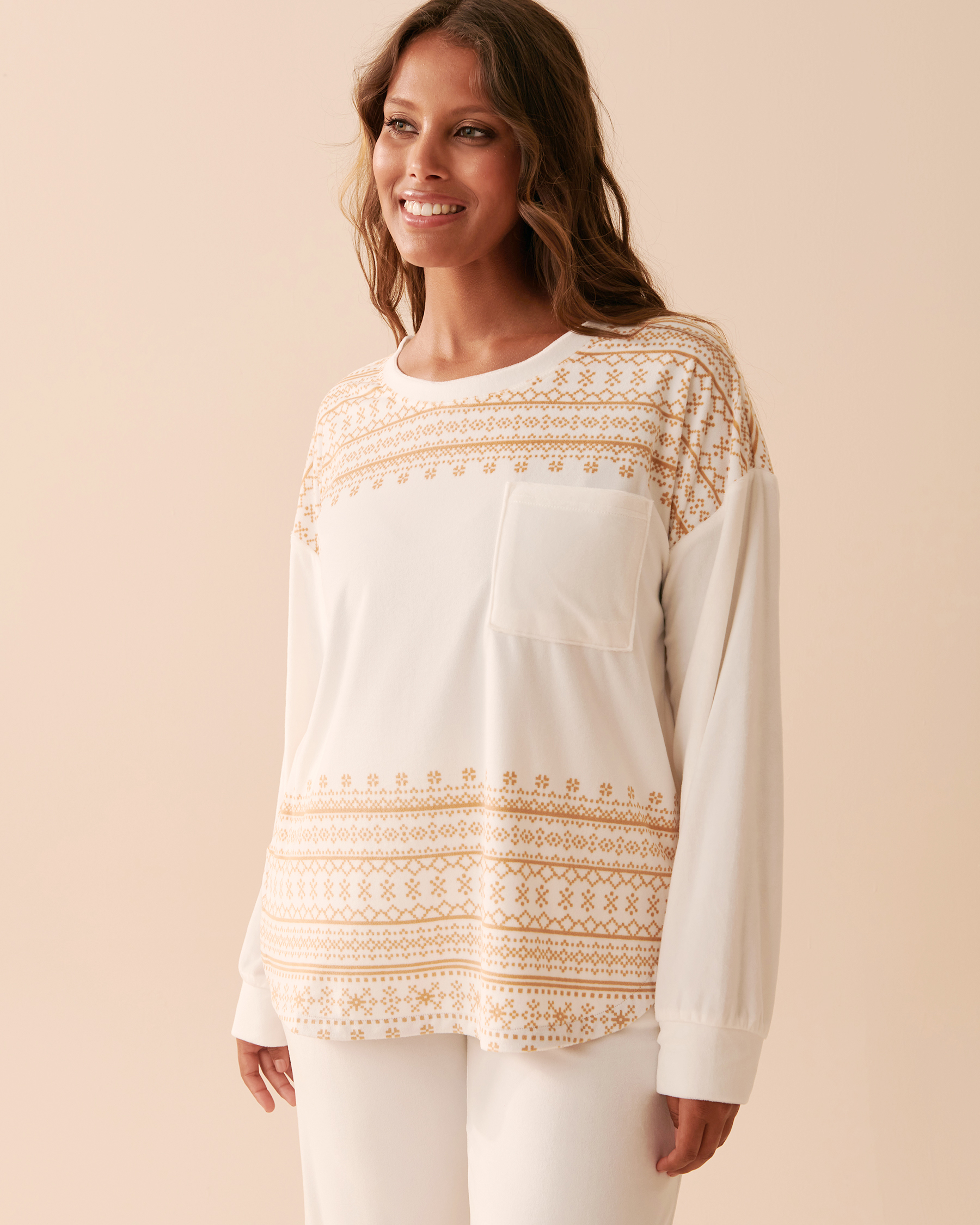 Chandail manches longues à poche en velours luxueux