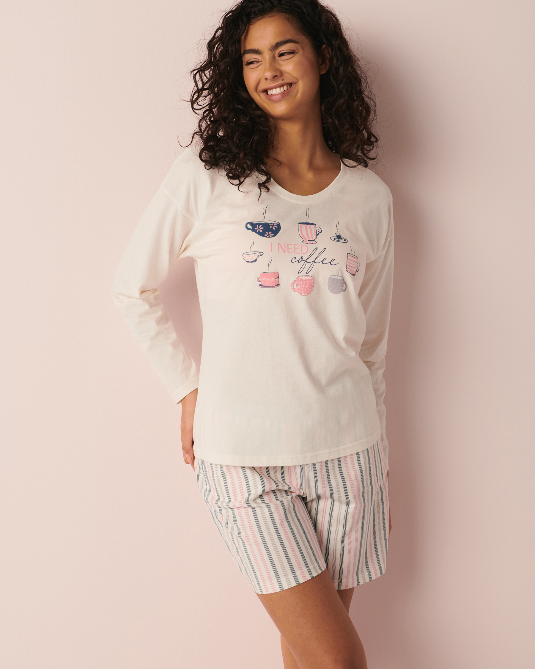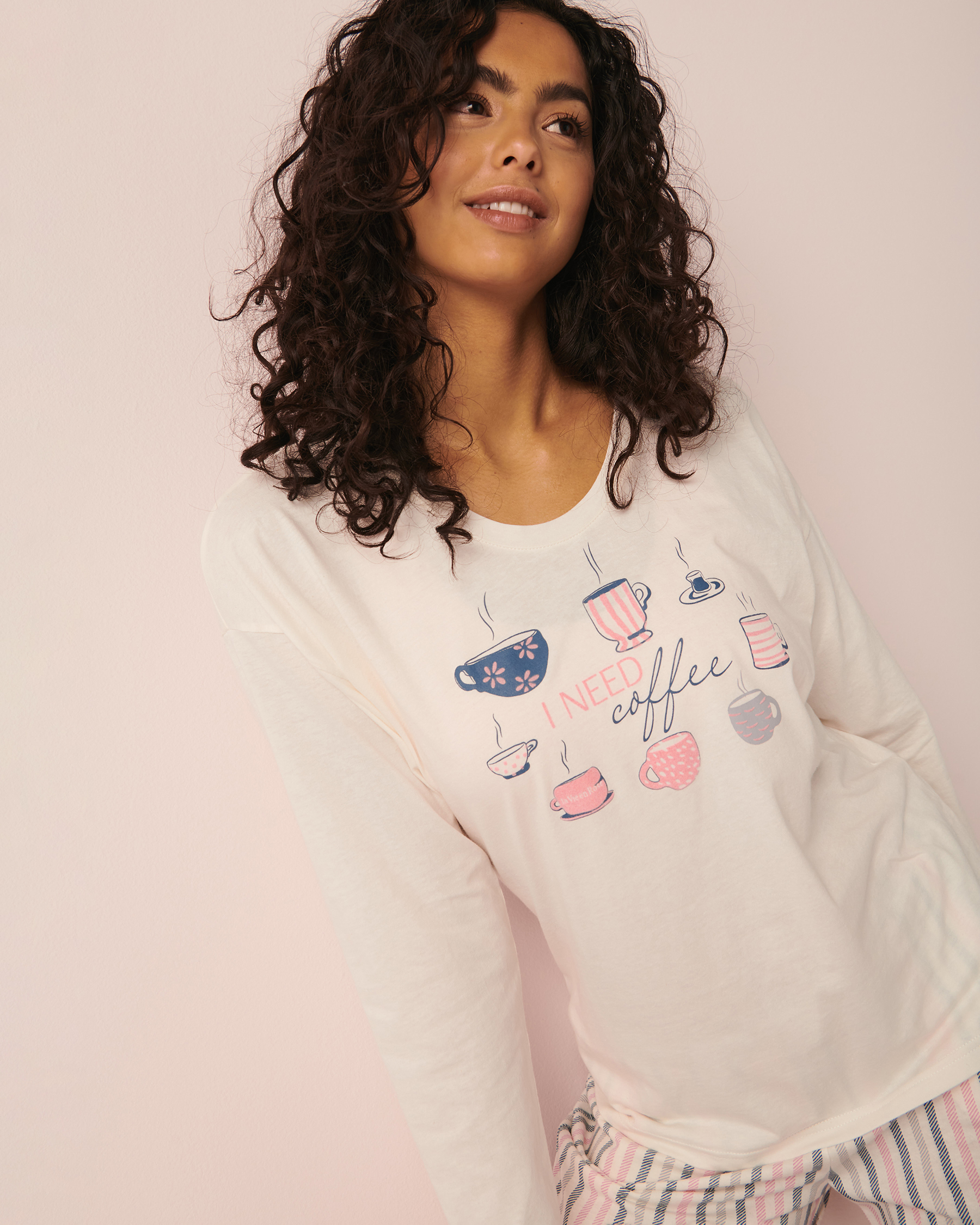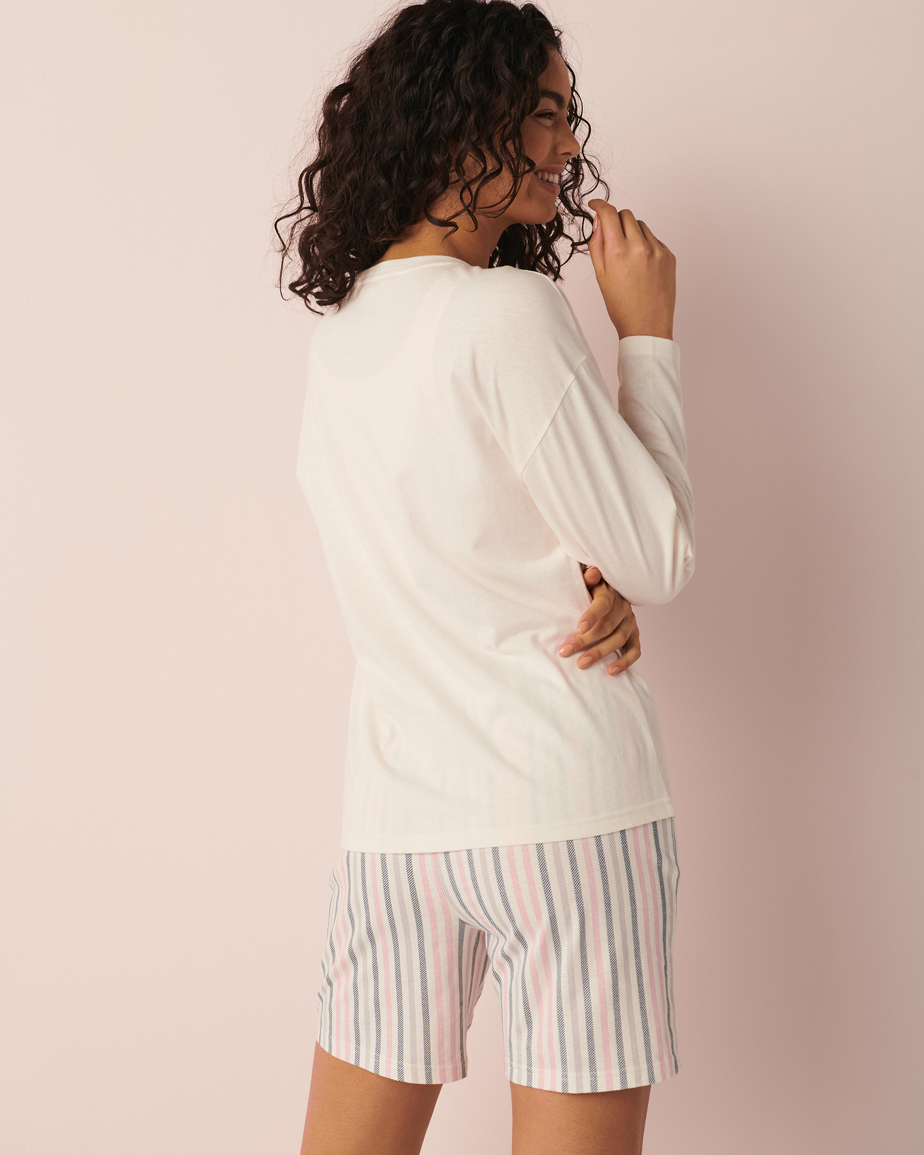 Chandail manches longues en coton à col rond avec imprimé à l'avant.