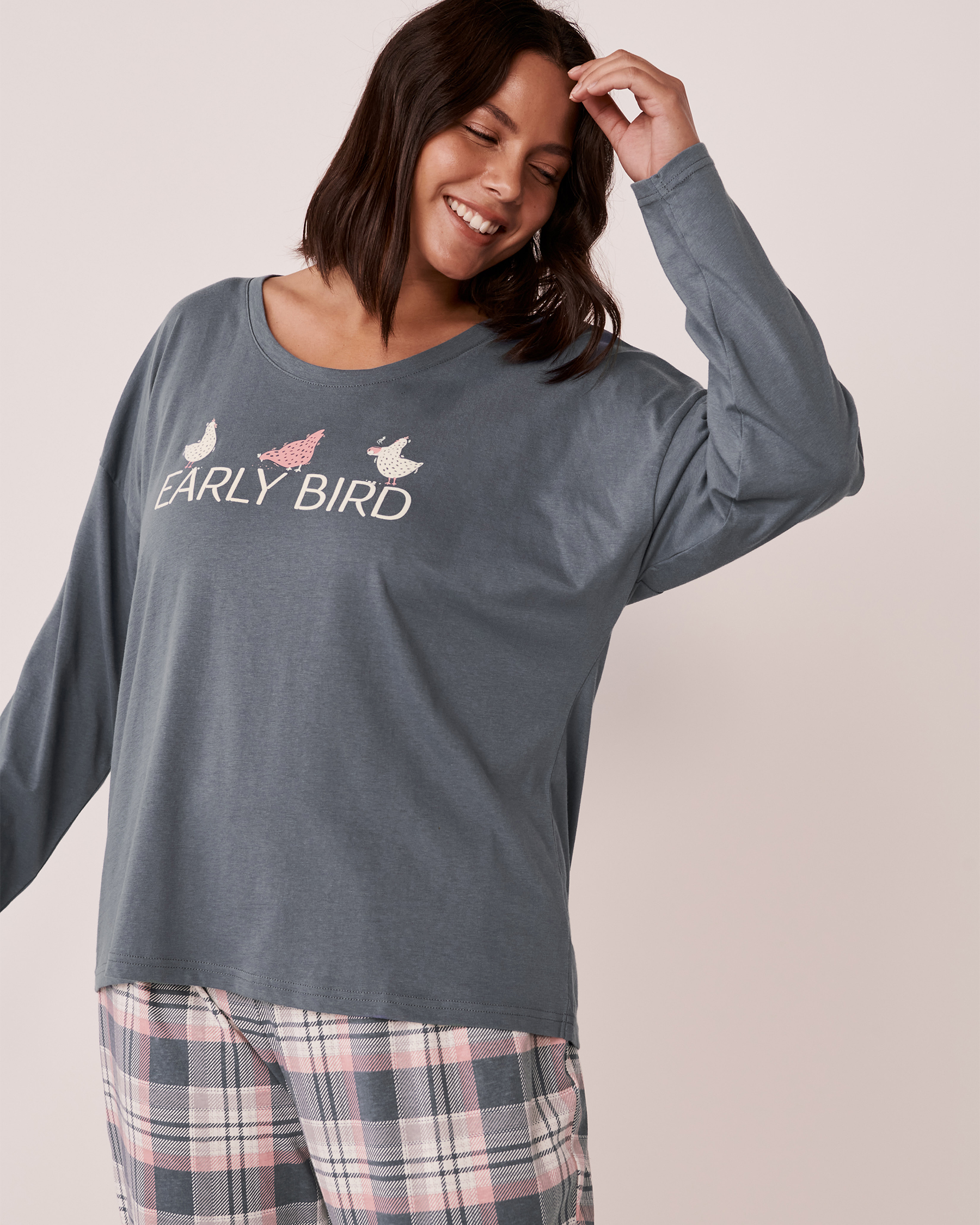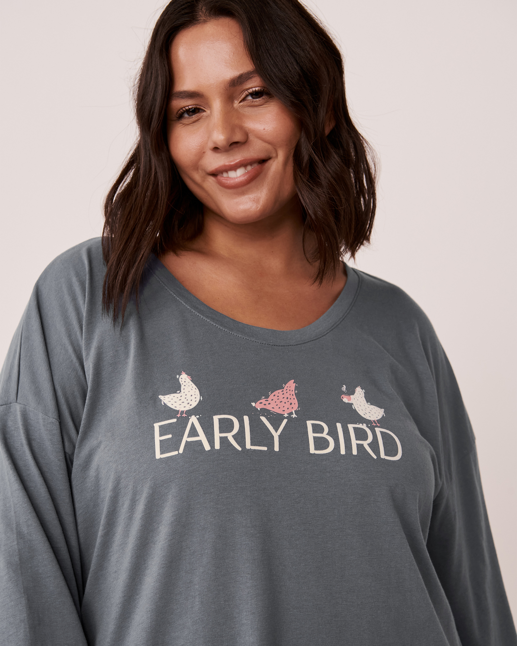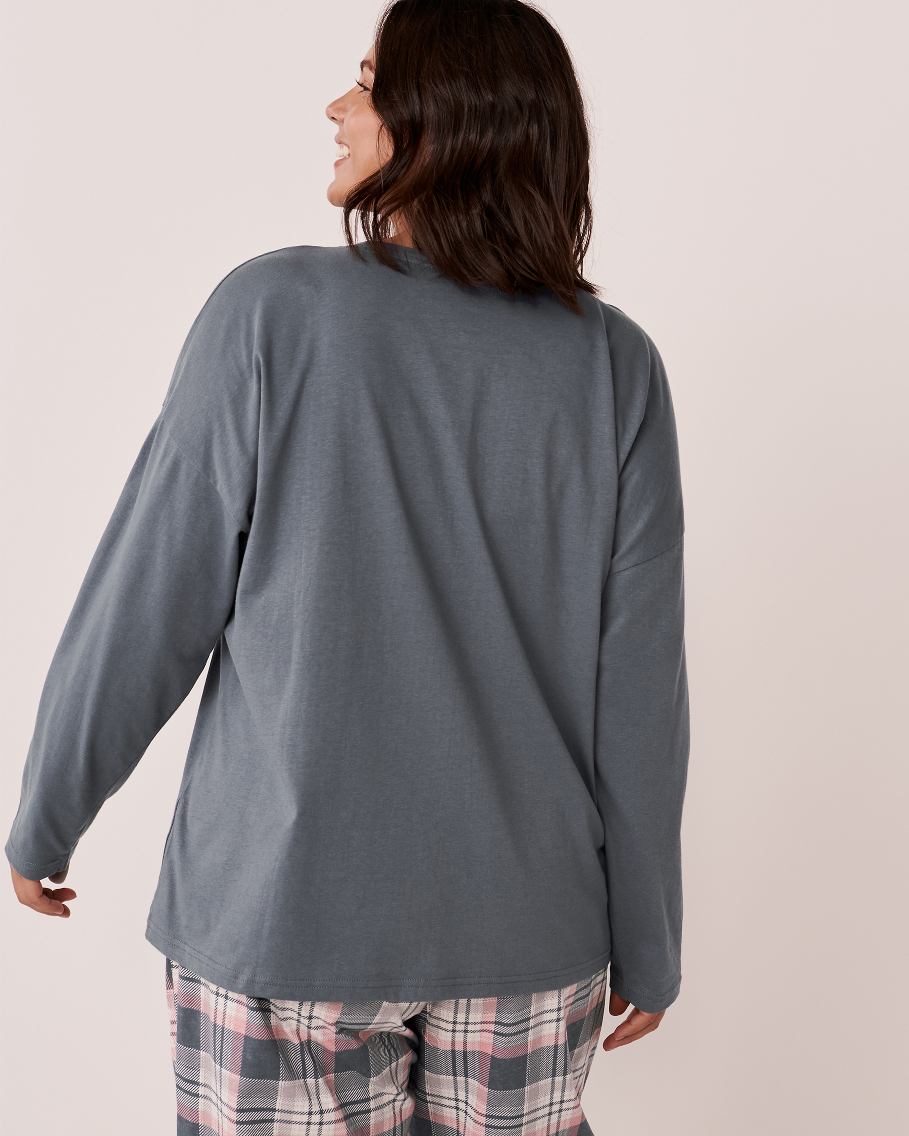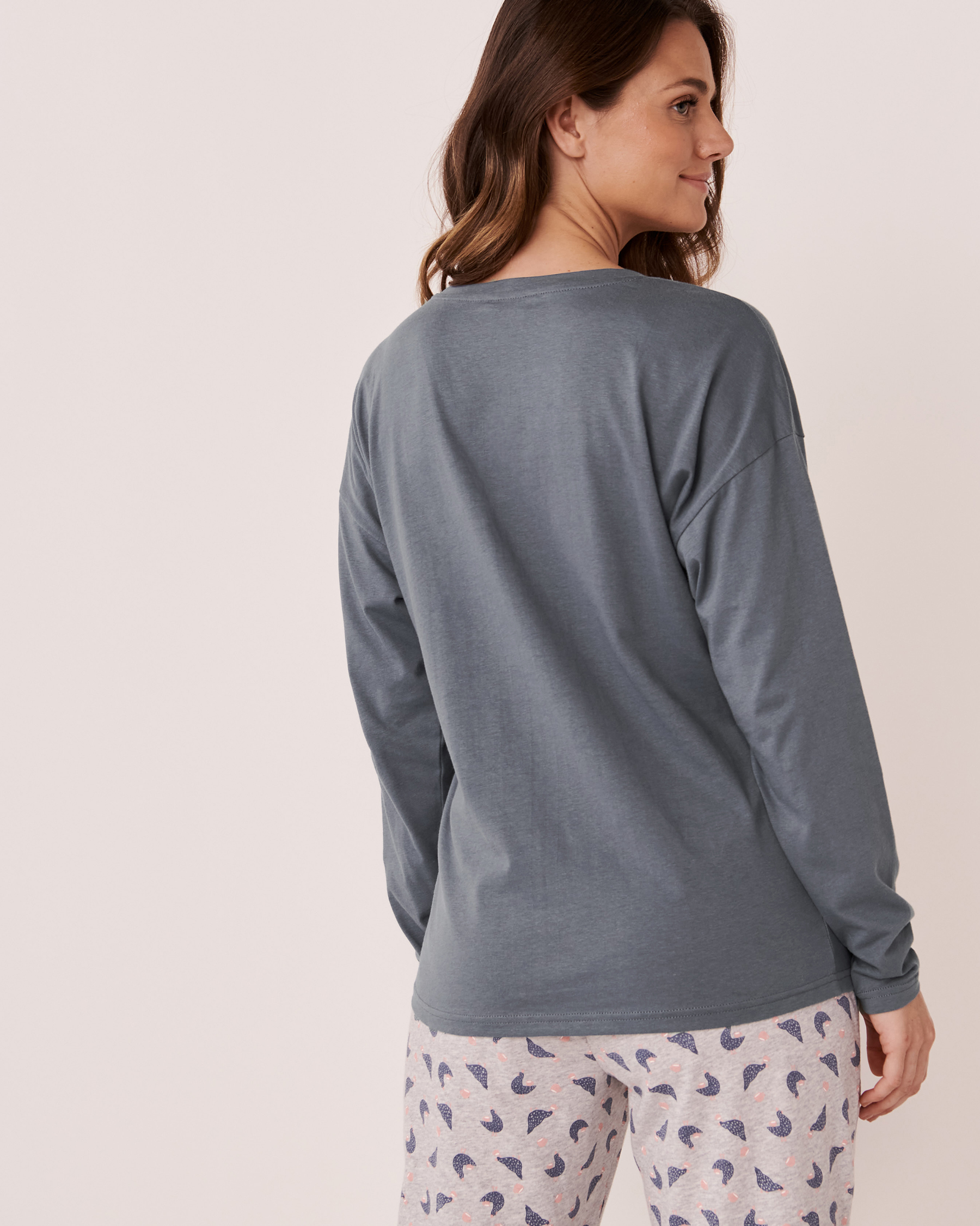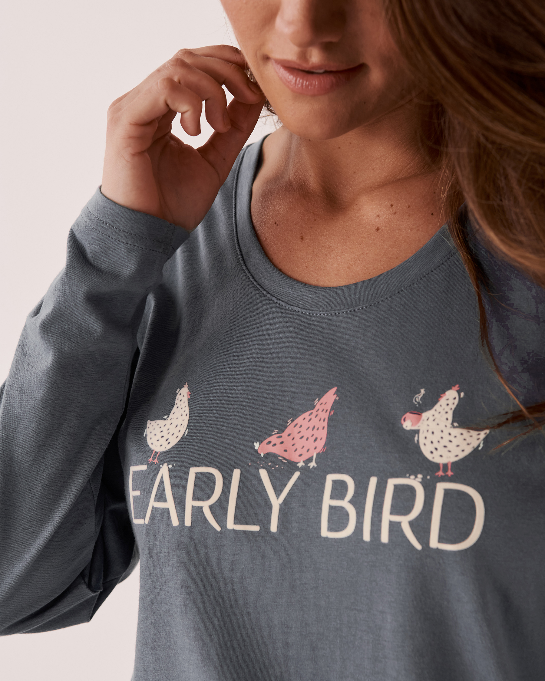 Chandail manches longues en coton à col rond avec imprimé à l'avant.